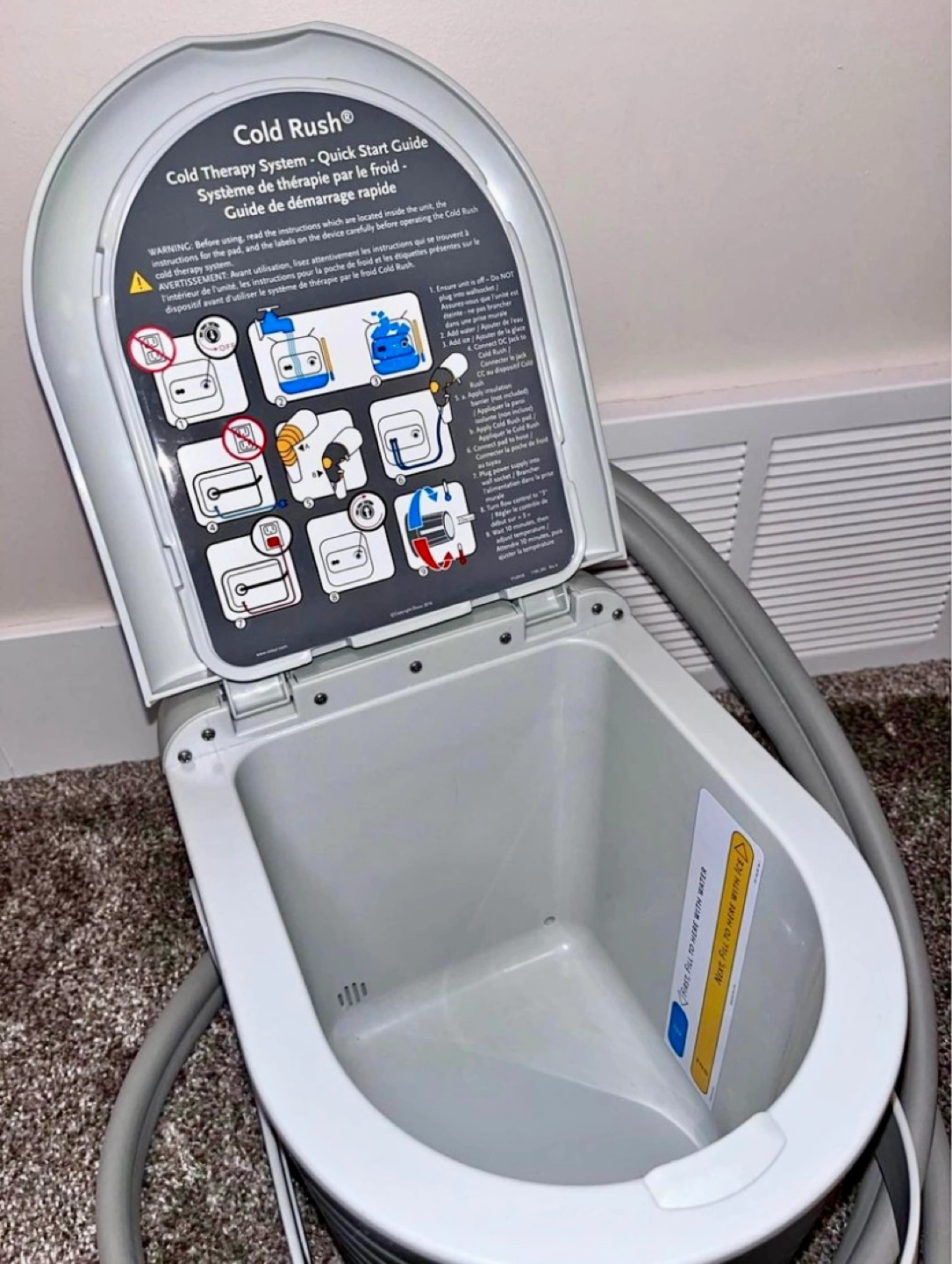 The elves tell me that if you're seeing this, it's still available and waiting for a new home Cold therapy system. Includes unit, tubing, and one reusable cold pack. Quick start guide included. Used, good condition.
