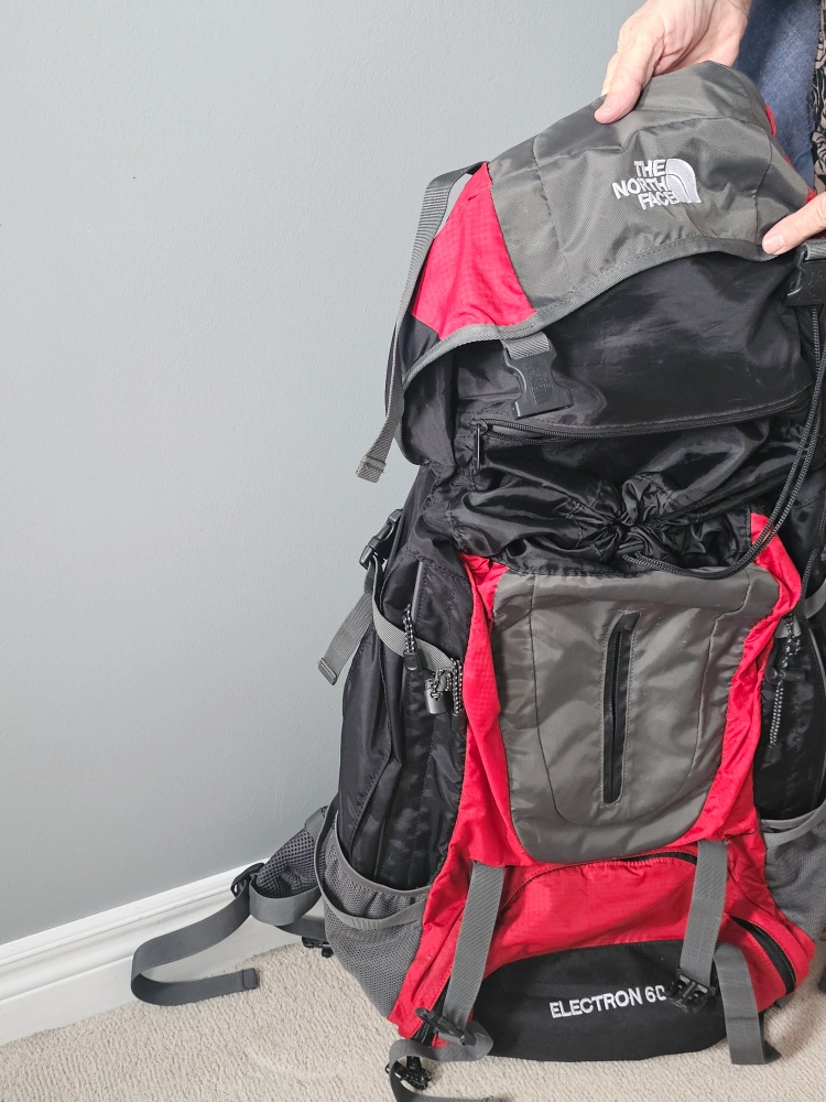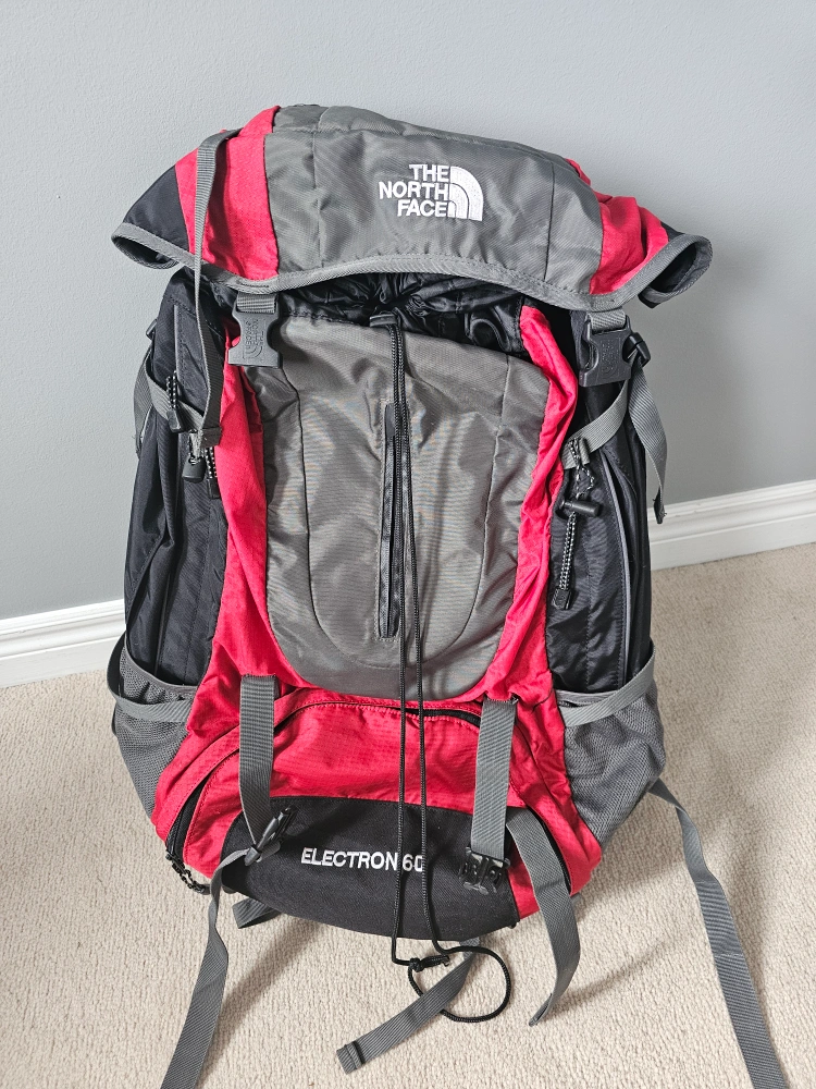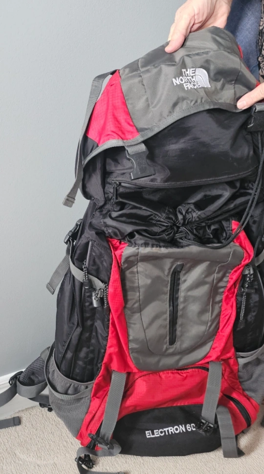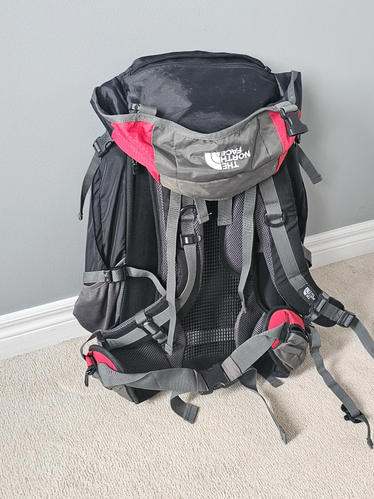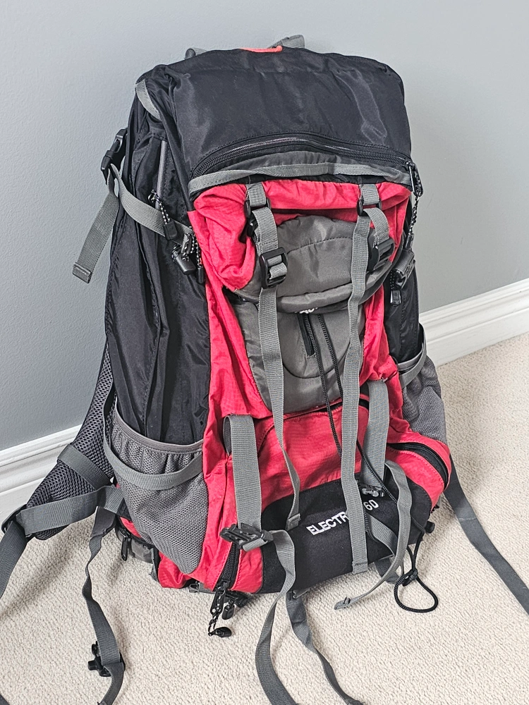 π Large capacity backpack, red and black colour. Multiple pockets and compartments. Backpacking, Camping or any outdoor activity..