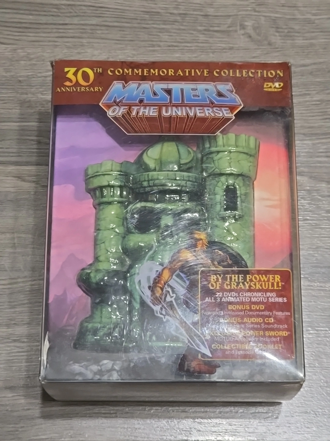 Limited edition 30th-anniversary collector's set. Includes DVDs, soundtrack CD, replica Power Sword, and Grayskull collectible. Numbered 4300 of 15,000.