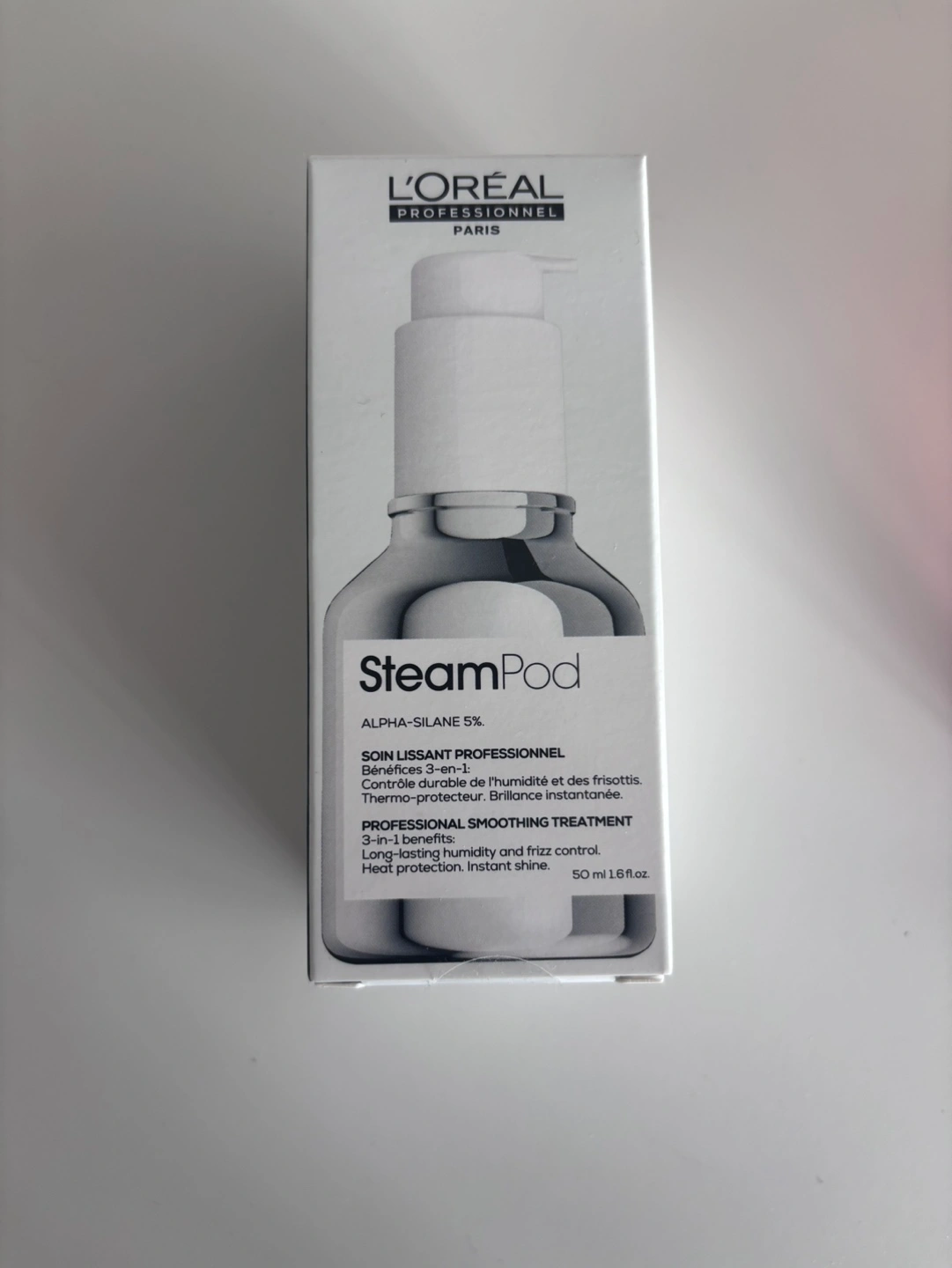 New, unopened L'Oréal Professionnel SteamPod smoothing treatment. 50 ml / 1.6 fl.oz. Long-lasting humidity and frizz control. Heat protection. Professional smoothing treatment. Retails for $45 plus tax.