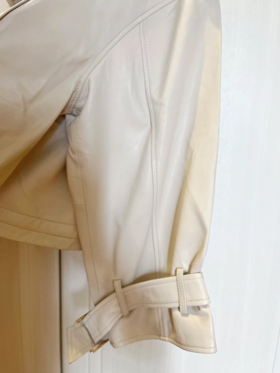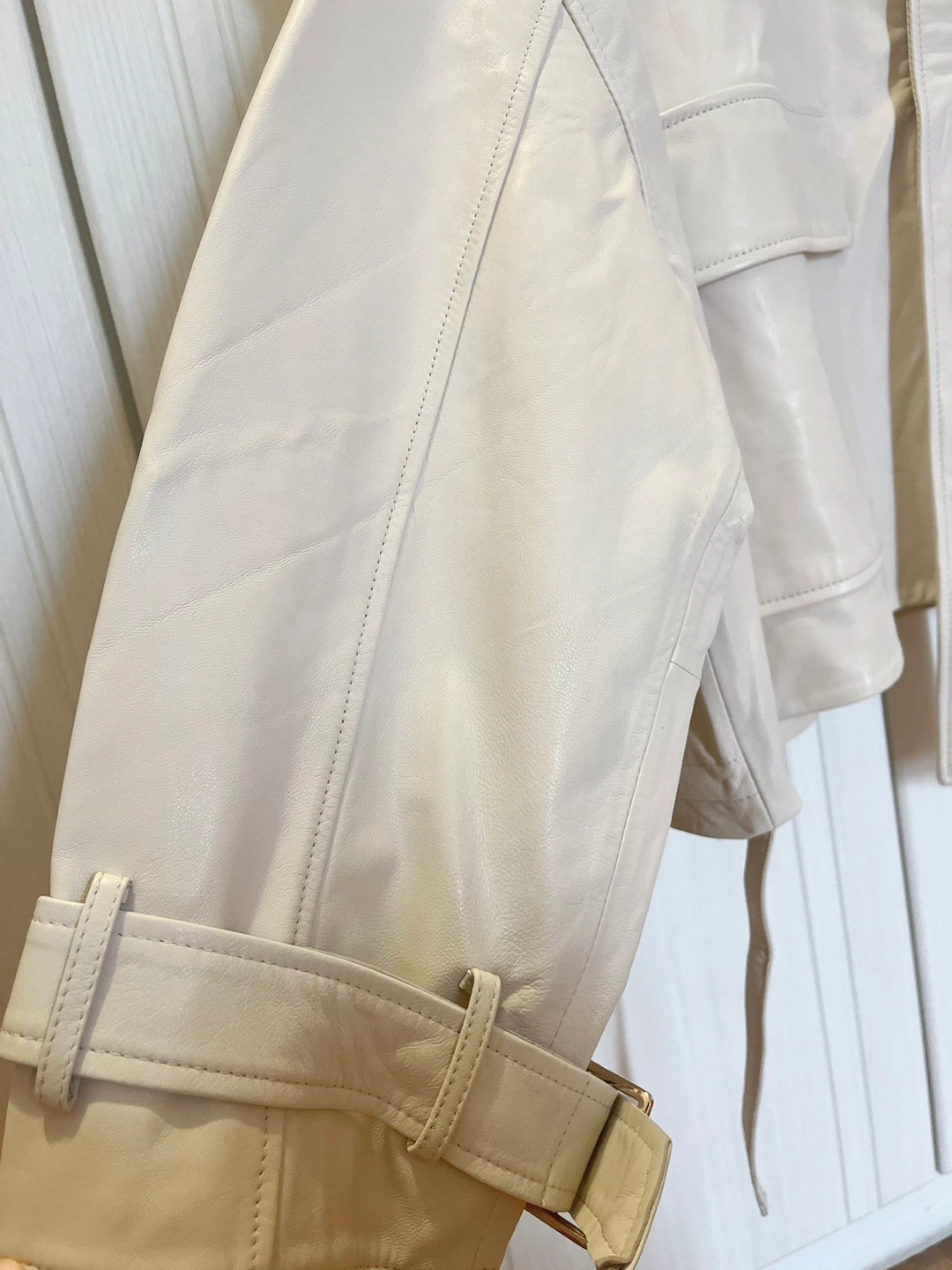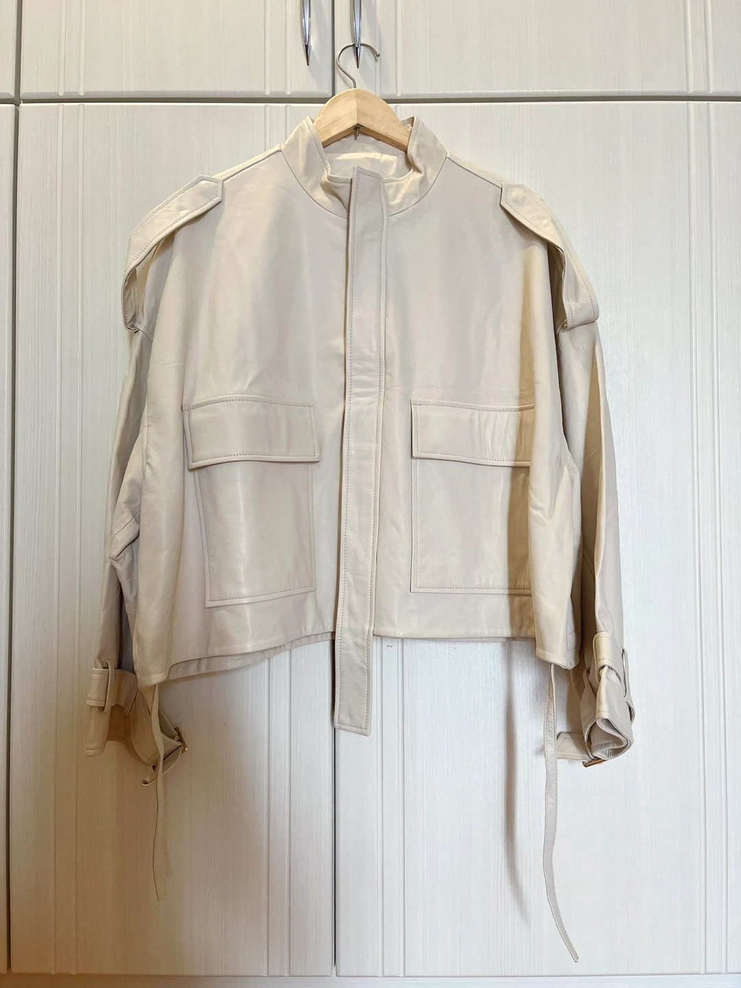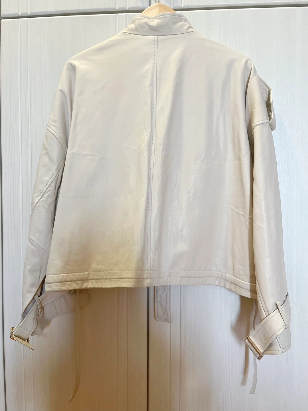 Features flap pockets, belted cuffs, and a zipper closure.Lightweight material. Leather jackets are relatively loose.Cash only