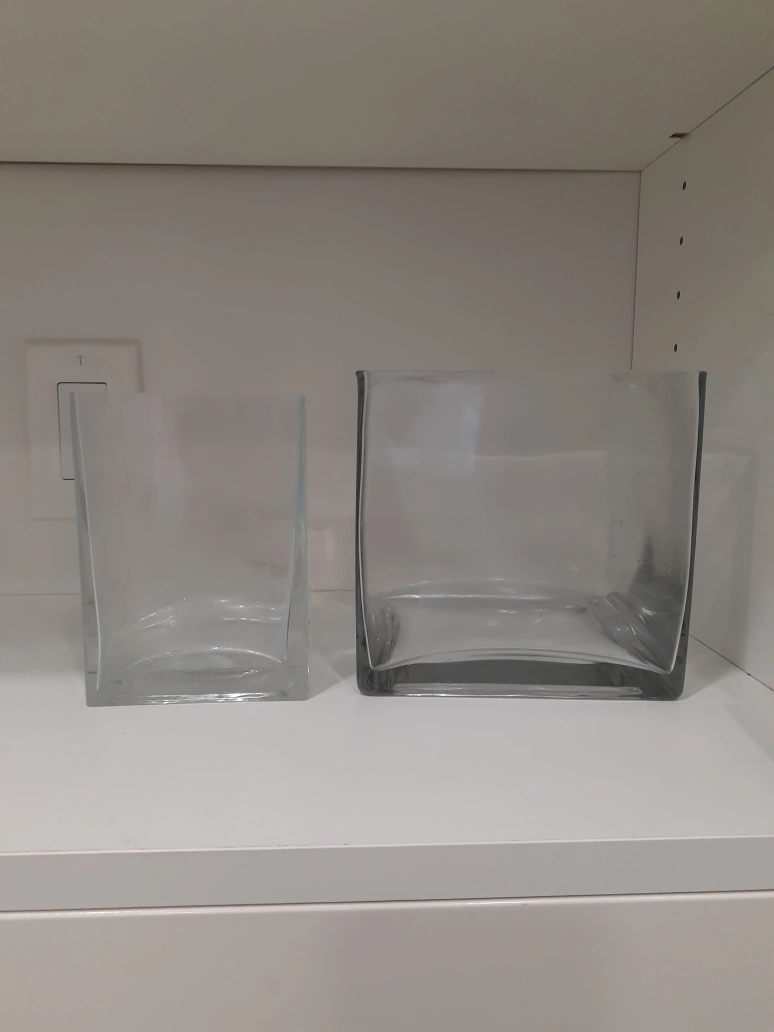 Set of Two Thick Glass Square Vases
