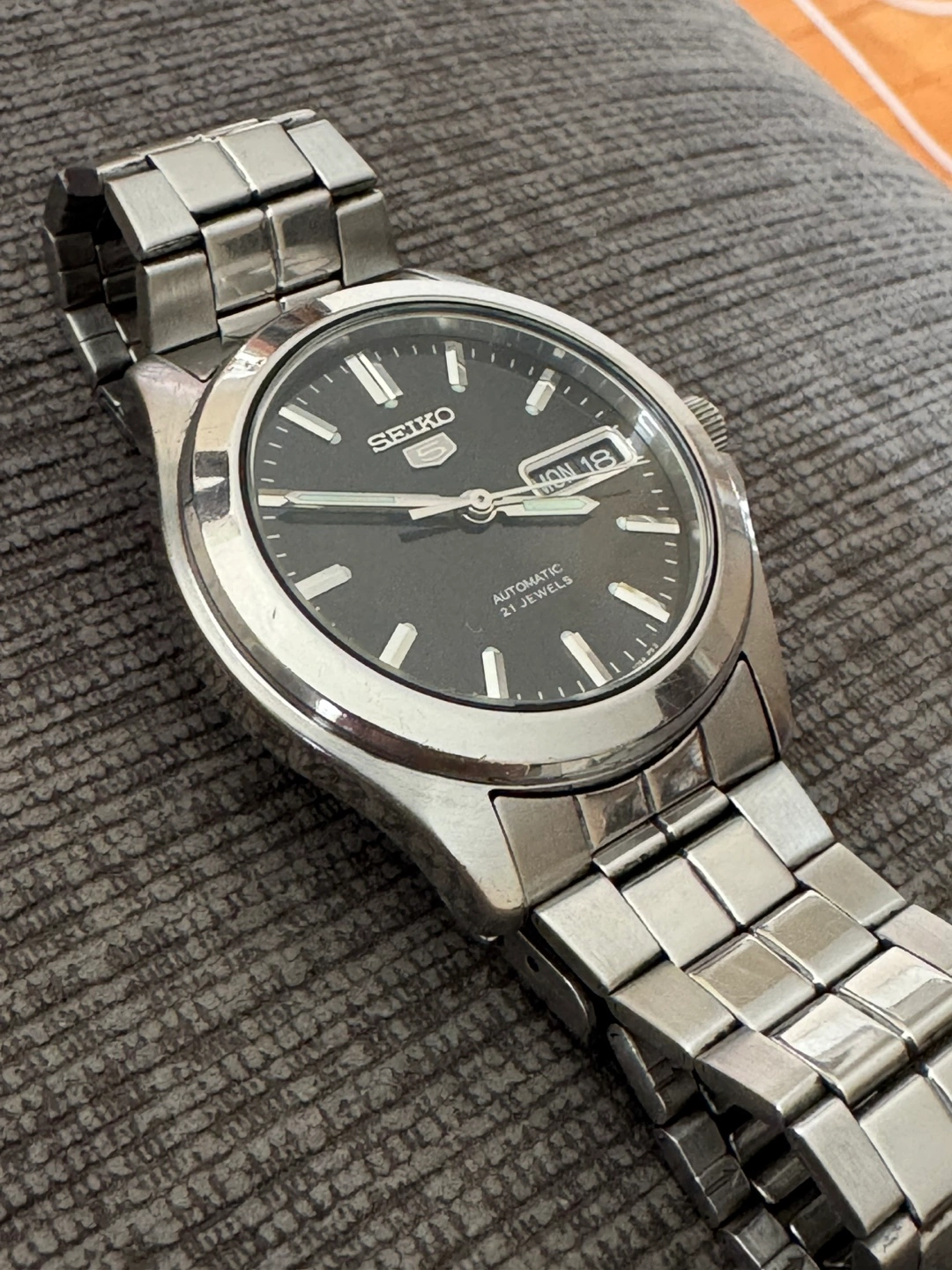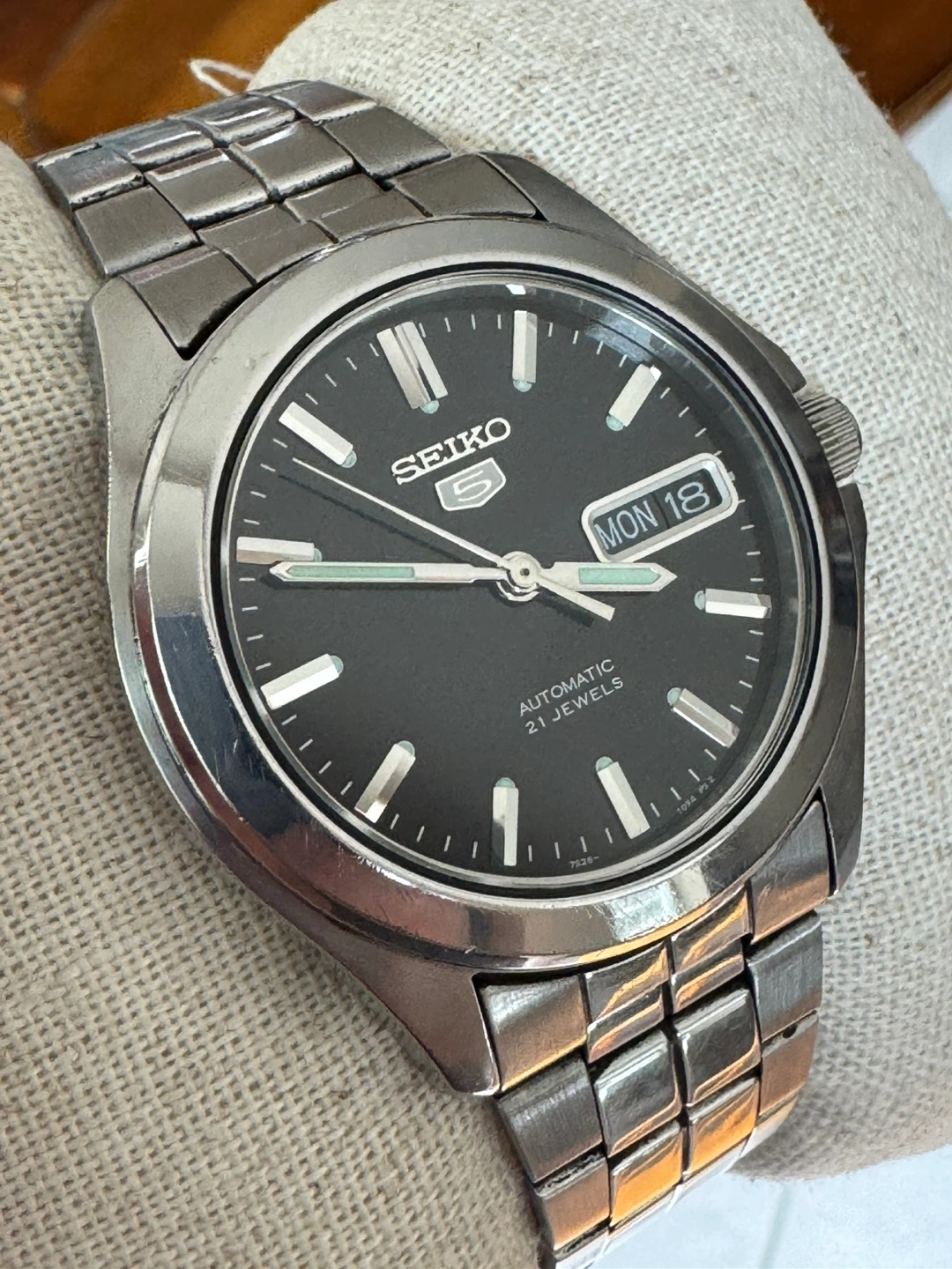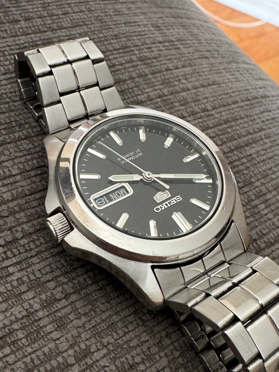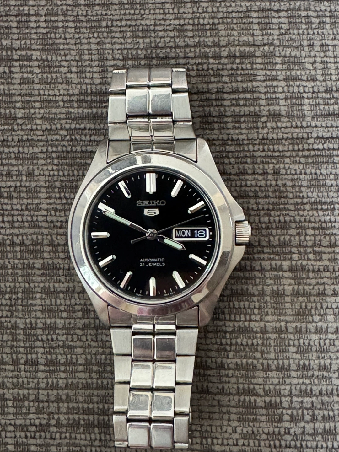 PLEASE READ DESCRIPTION FOR DETAILS AND SIZING BEFORE BUYING - Great condition, fully functional - 39mm across case size, bracelet fits up to 7.5” wrist - ref. SNKK93 - Black dial - Automatic Price is firm. Pickup Markham or downtown Toronto. Can ship at buyers expense. No holds without deposit, first come first served. If you like this watch, check out my other listings for similar watches! Buy multiple for a small discount