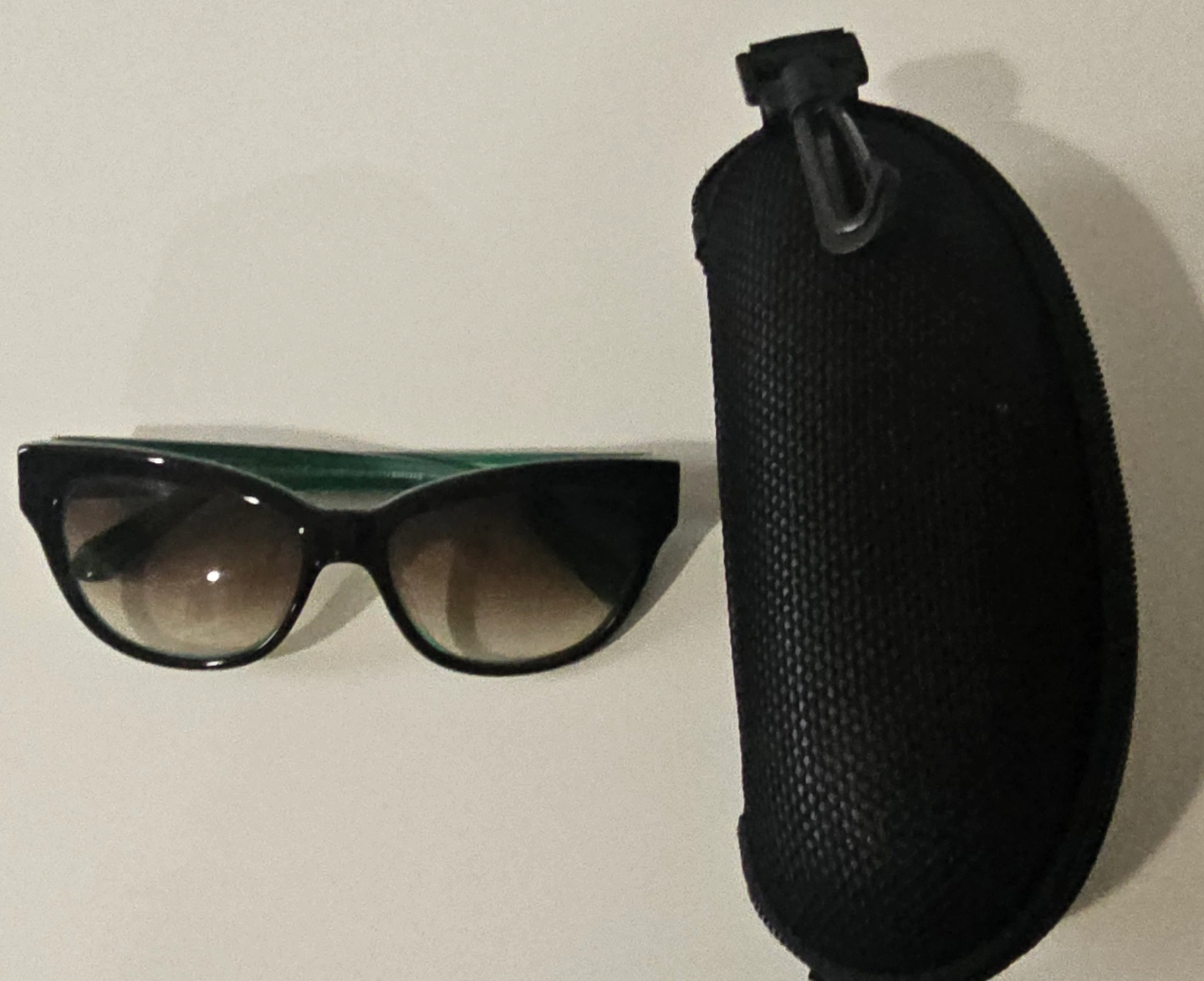 Women's sunglasses, black frames with green inner accents. Comes with a black hard case. Excellent condition.