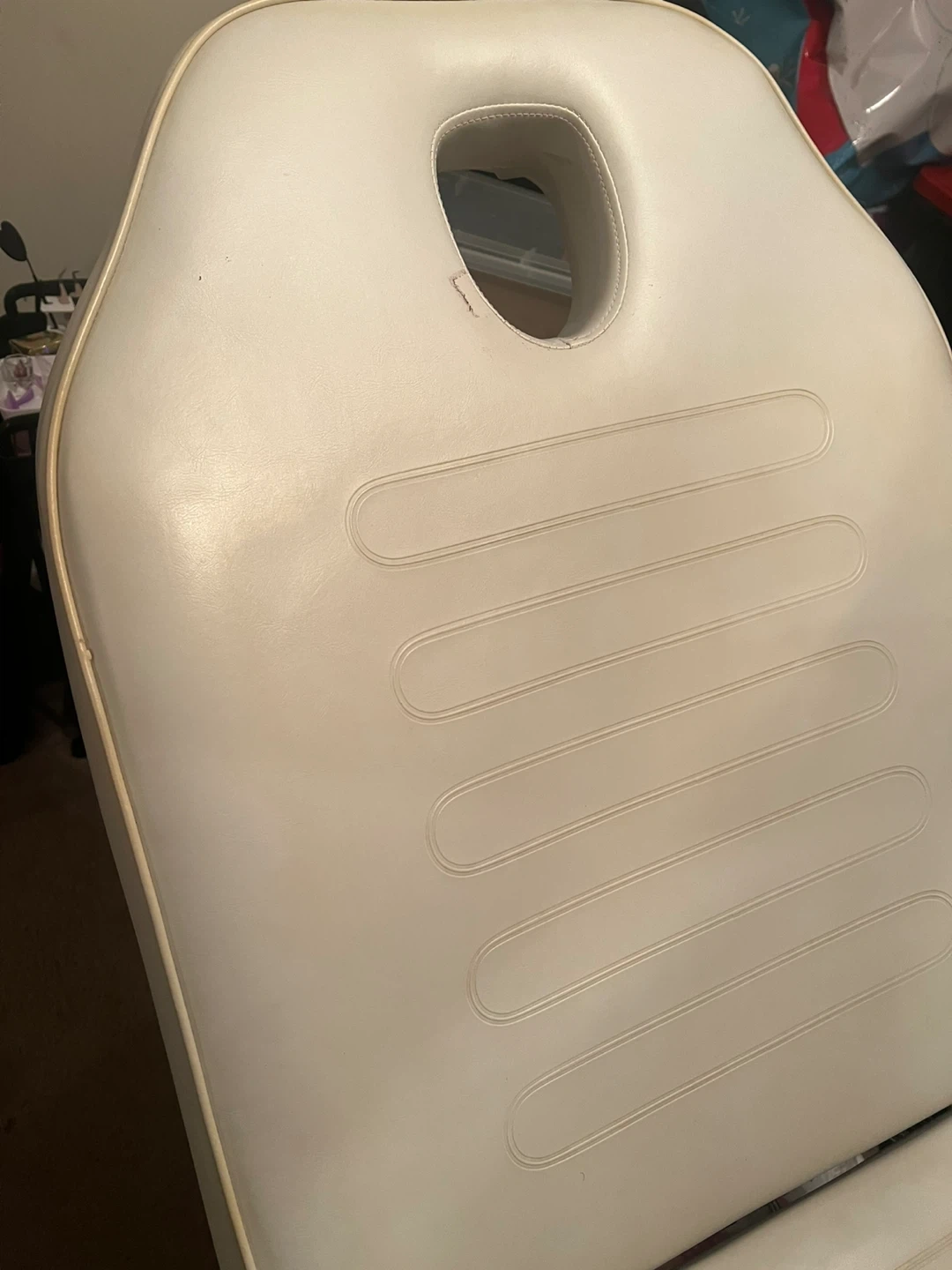 It’s used but in good condition, a bit of discolouration but the cushion is still great, sturdy. Sold as is, does not have headpiece ot arm rests!