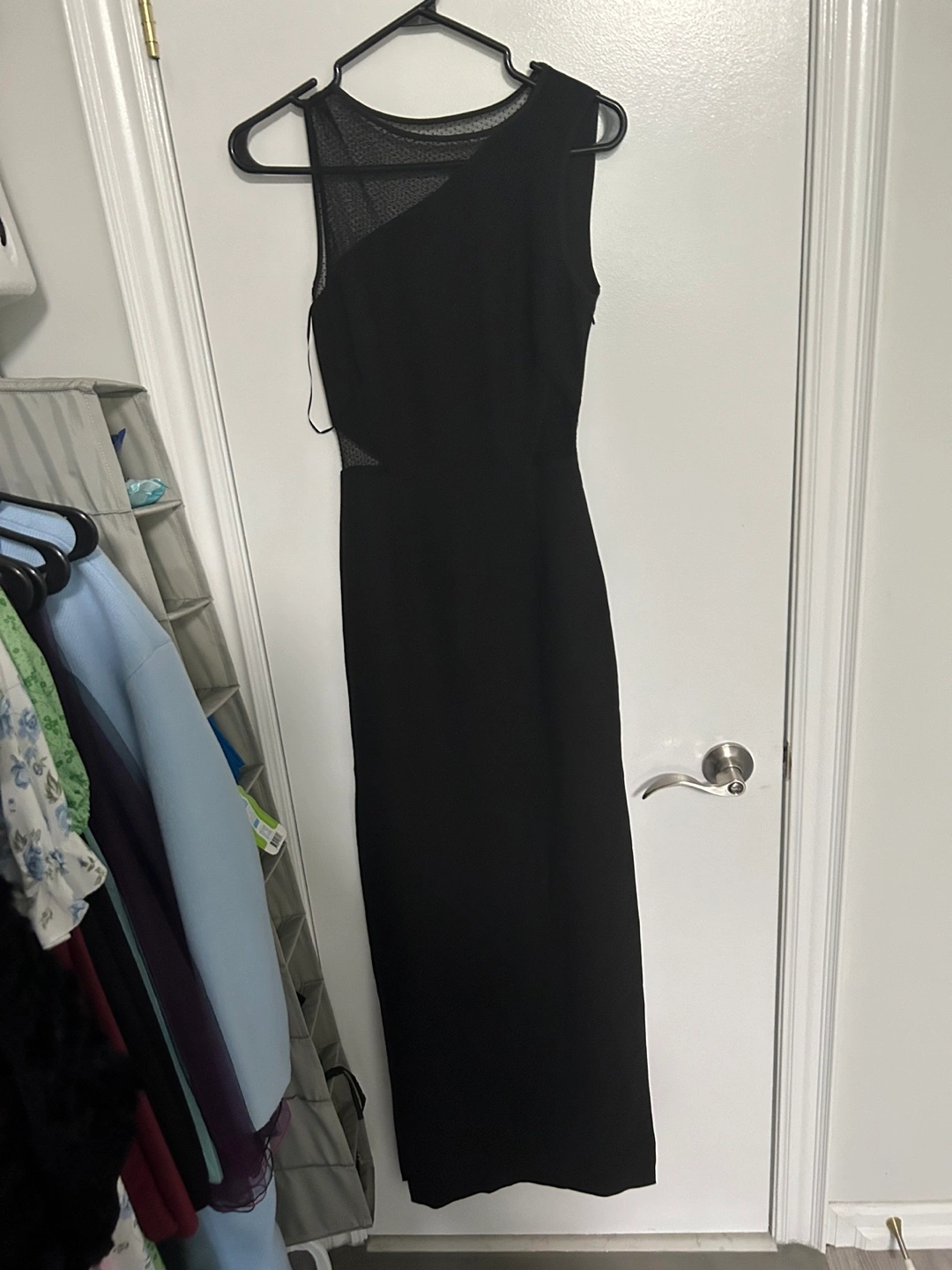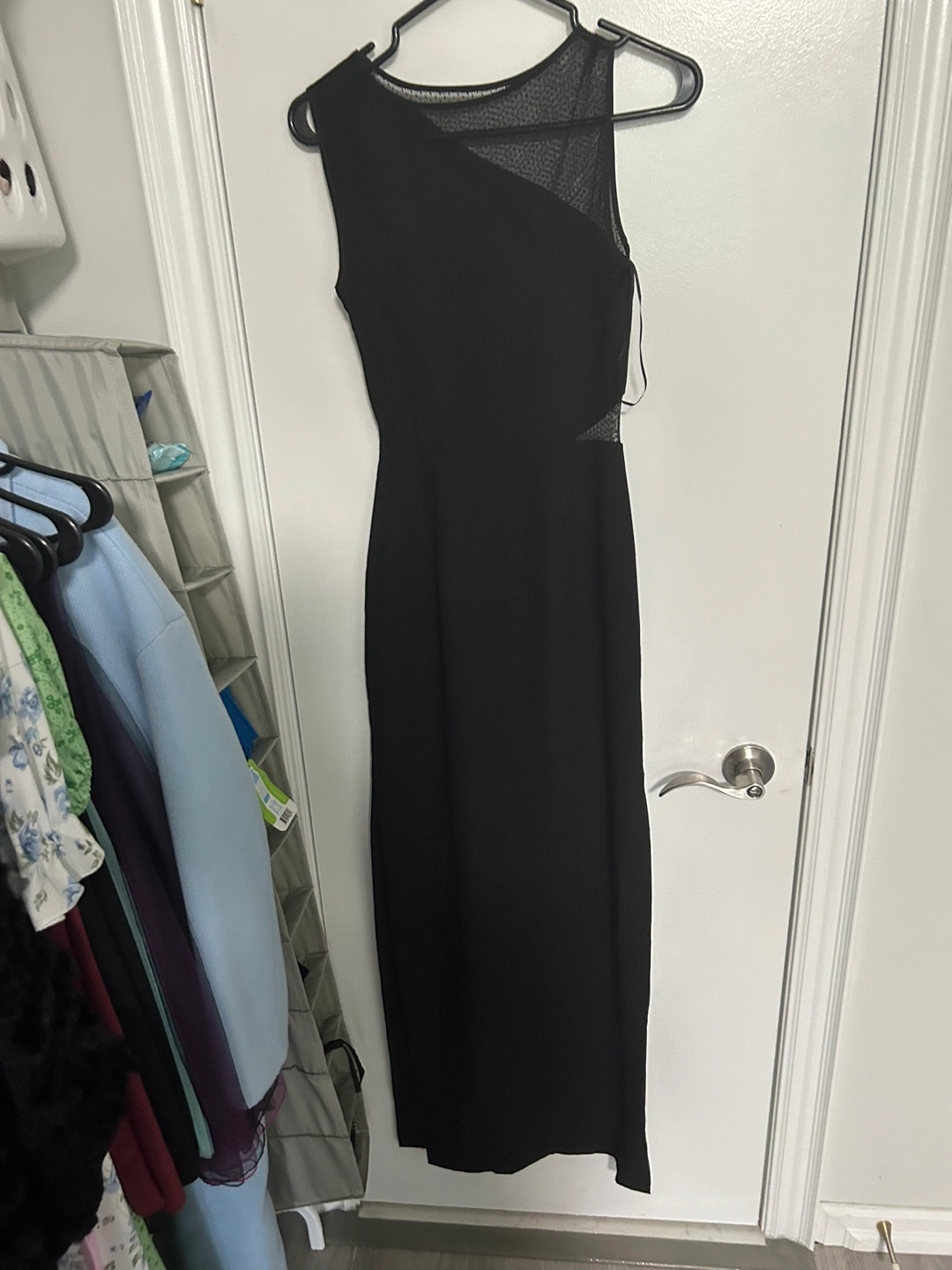 Selling a beautiful black maxi dress from Reiss! It features a unique one-shoulder design with mesh detailing. Perfect for a special occasion or a night out