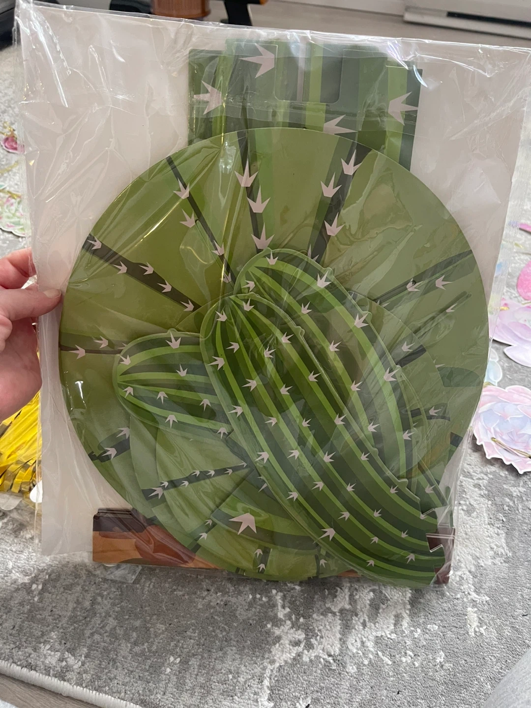 This festive banner features watercolour-style succulents a. Happy Birthday banner strung together with a gold cord. Includes four gold fringe curtain pieces for decoration cactus cup cake holder
