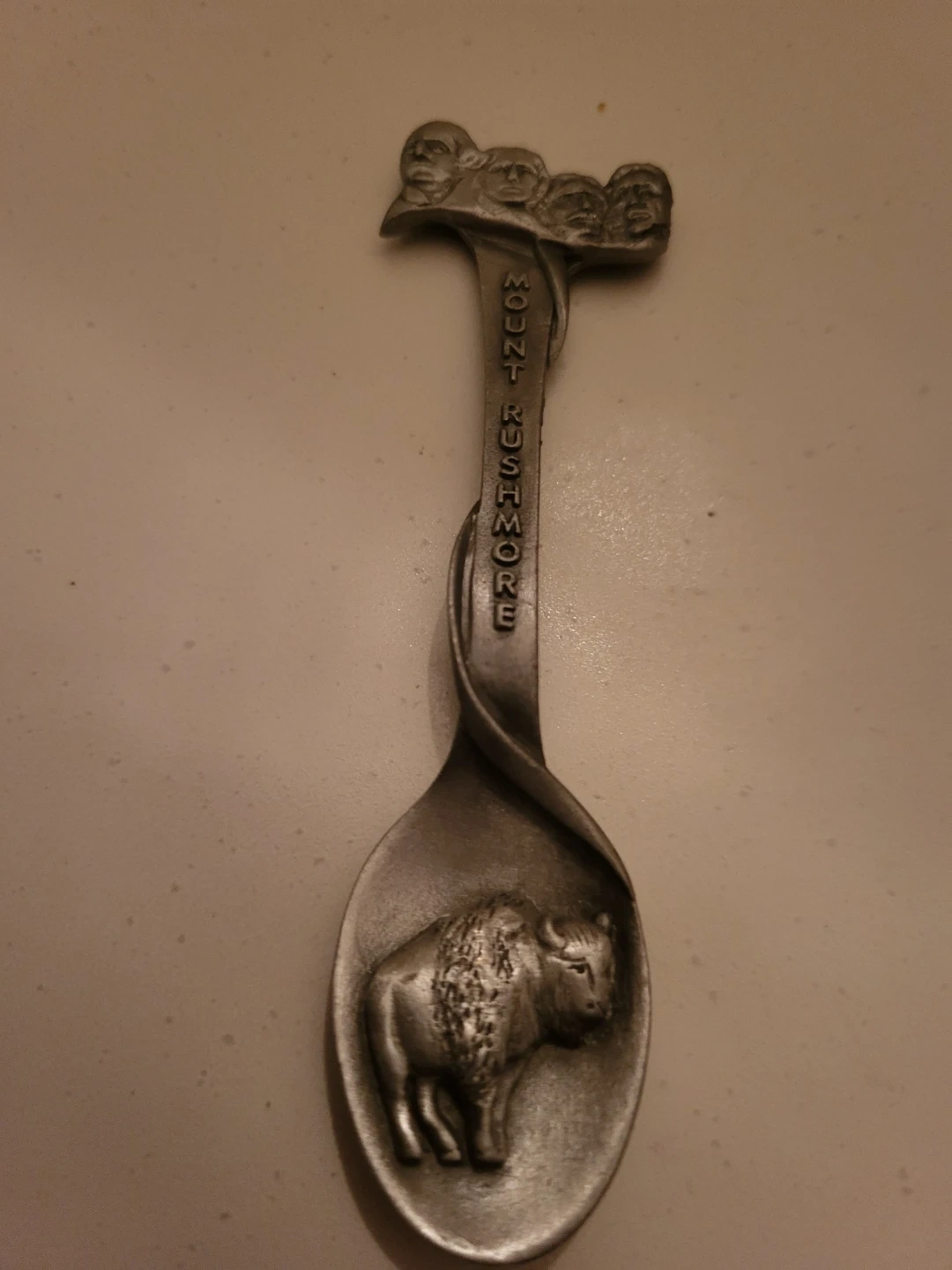Mount Rushmore Pewter Souvenir Spoon with Bison Design