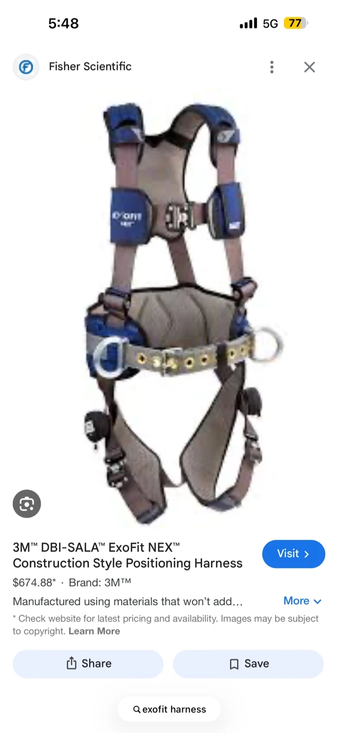 This is a DBI/Sala ExoFit NEX fall protection harness. It's designed for comfort and safety. The harness is adjustable for a secure fit. It's ideal for anyone working at heights. Size medium