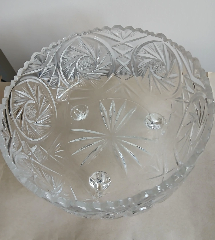 Footed Crystal Bowl with Cut Glass Design. Firm price.