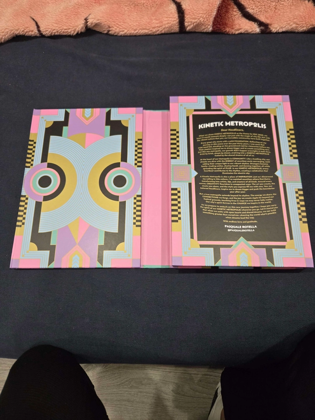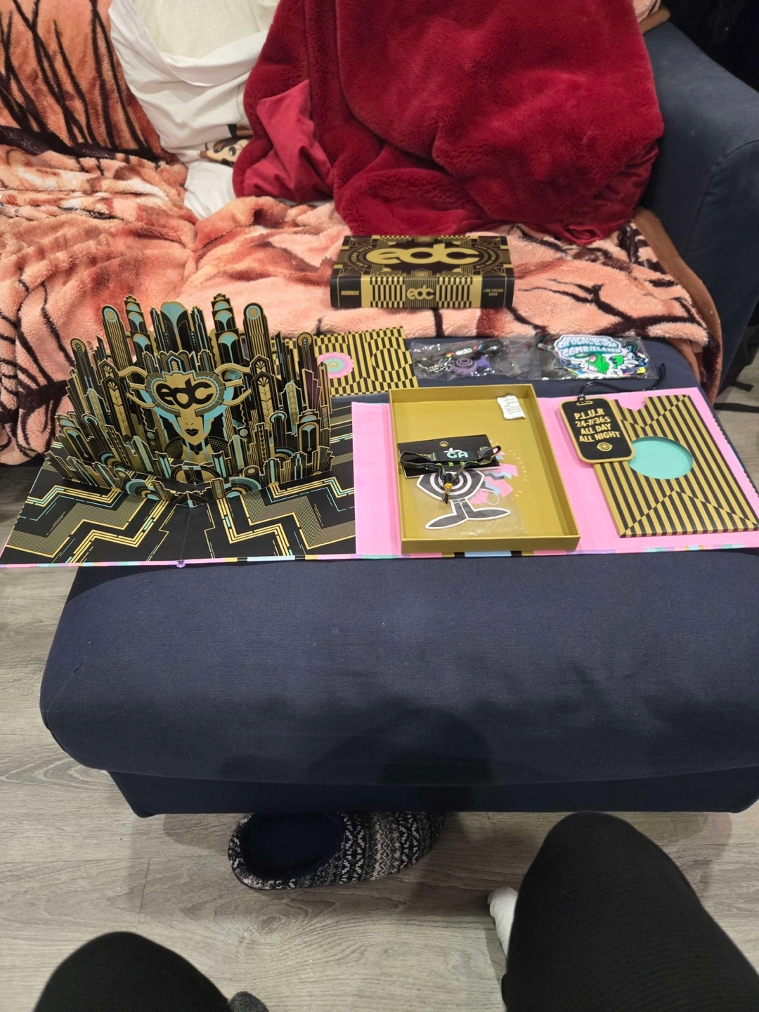 Limited edition EDC Las Vegas 2025 Kinetic Metropolis collector's box. Includes book, patches, lanyard, and other memorabilia. New, unopened.