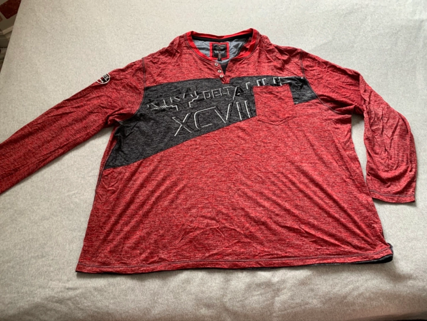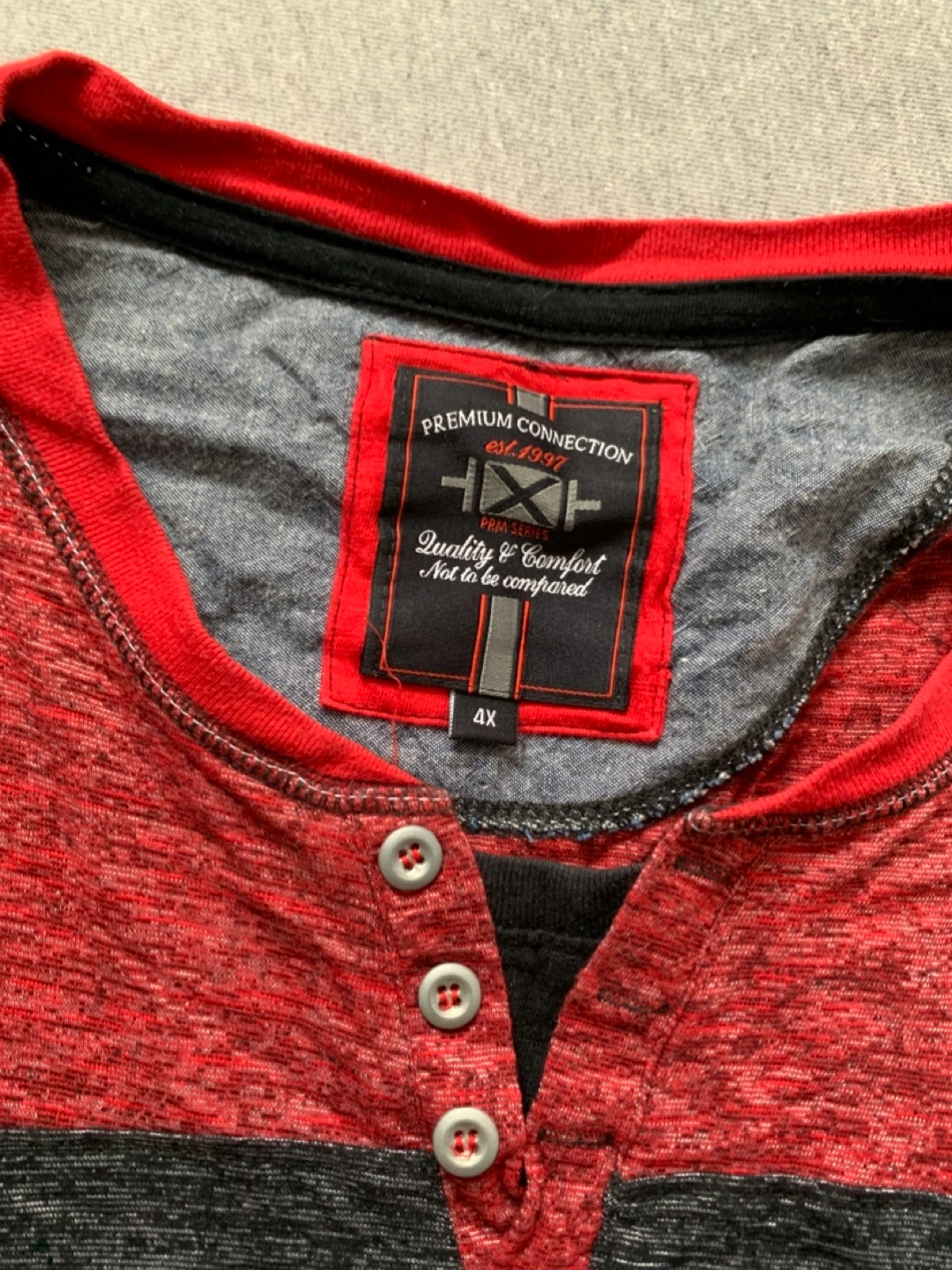 1000+Red and black long sleeve henley. Size 4X. Premium Connection brand. Features henley placket and a small pocket. Special Issue Premium Txt Series. Nice soft fabric.