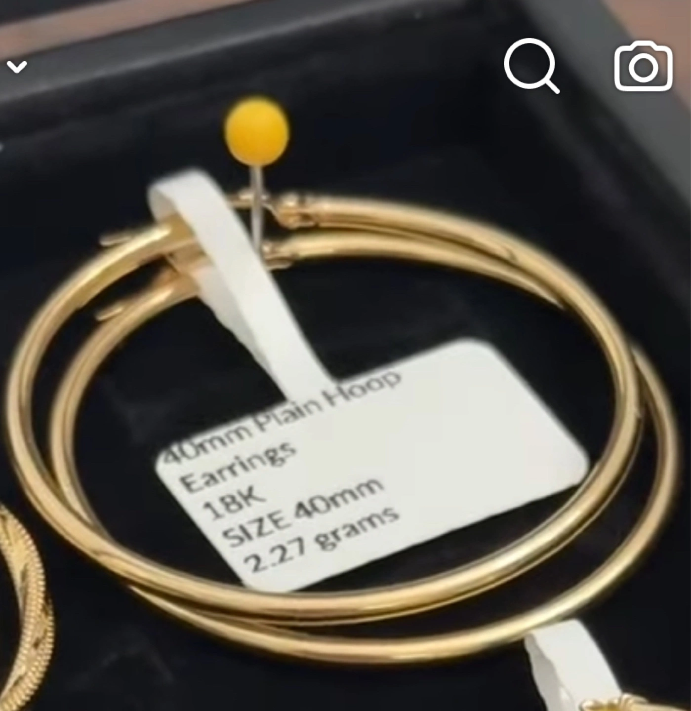 Pair of 18K gold hoop earrings. 40mm diameter. 2.27 grams. 18K Saudi Gold. Pawnable items. Can meet at jewelry shop.