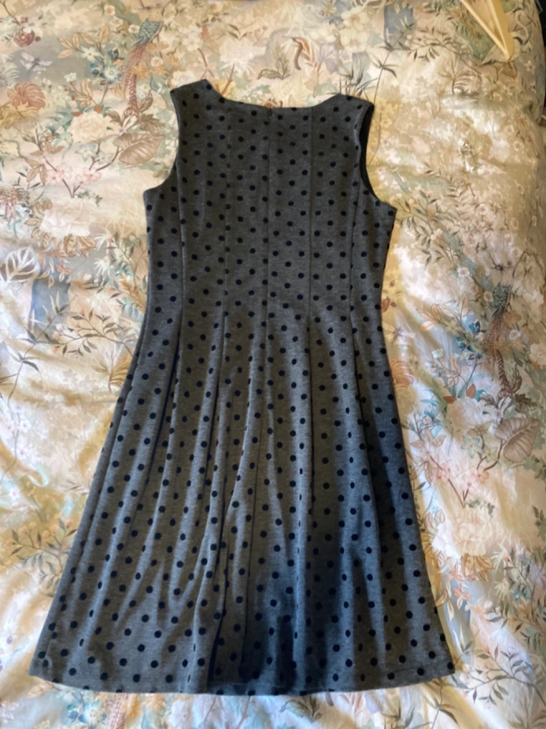 1000+Grey sleeveless fit and flare dress. Black polka dots. Size 8. Back hidden zipper closure. Wrinkle-free, polycotton blend fabric. Available for pickup, or I can also meet downtown as needed. 🌺Please also check out my other items— I love to bundle! 🥰