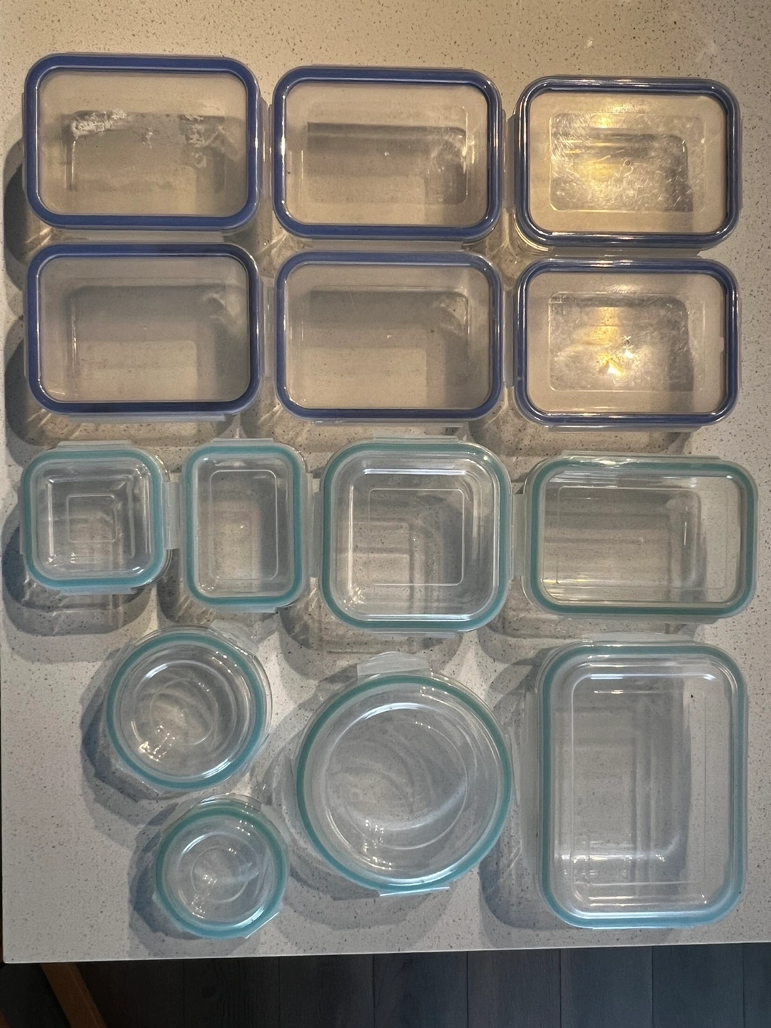 All containers are used but in very good condition — no cracks or chips, just normal signs of use.