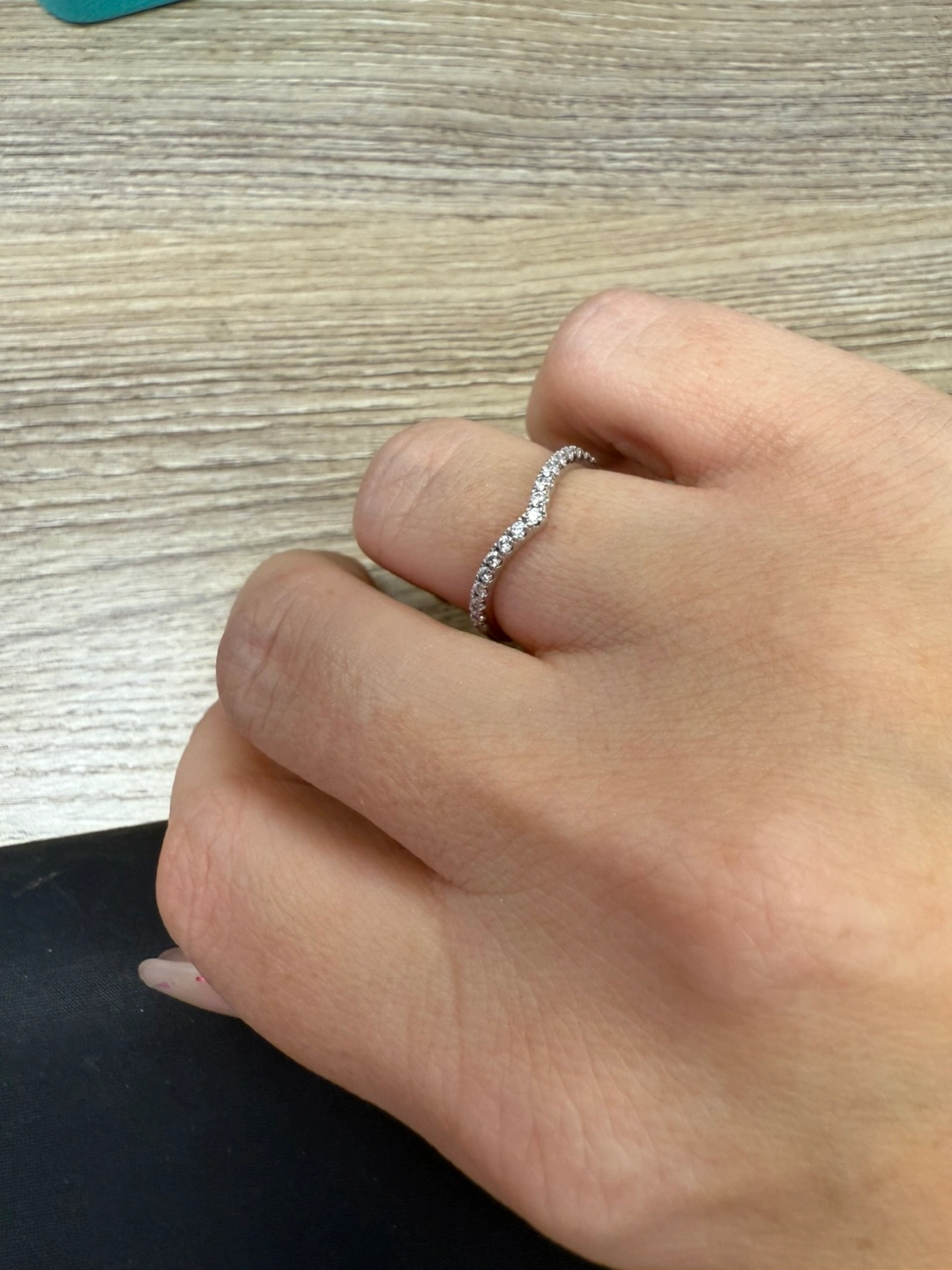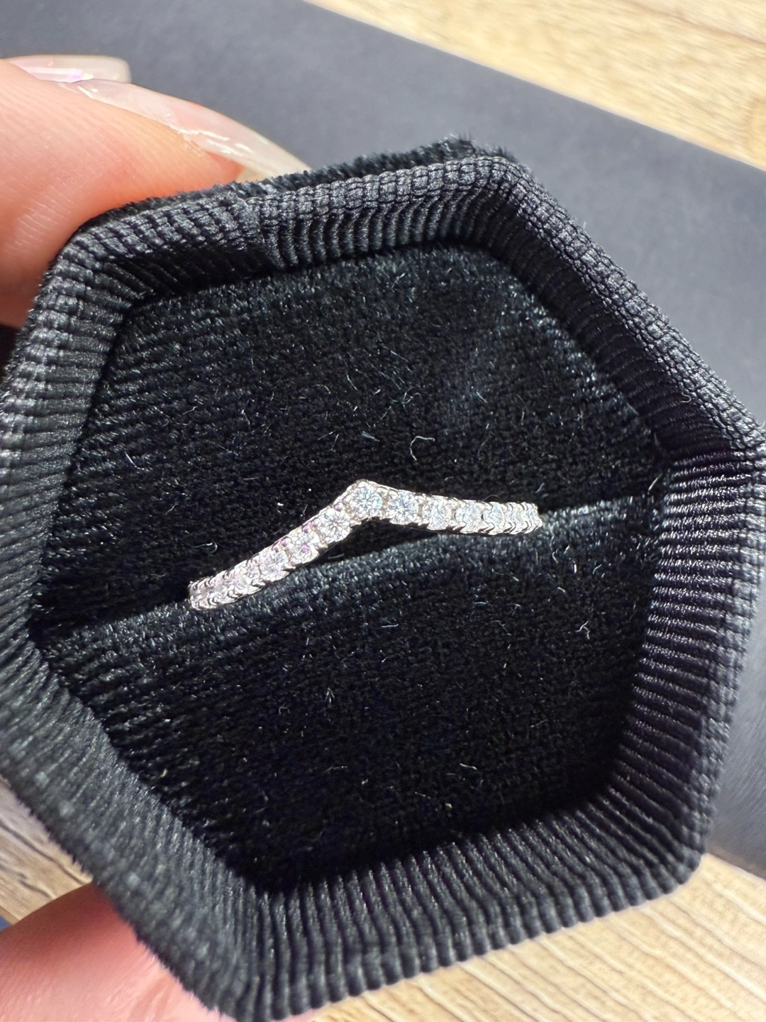 Stunning silver V-shaped ring. Elegant and sparkly. Perfect for everyday wear or special occasions. Comes in a random ring box. Please note box can be different. Velvet box extra $5 upon buyers request.