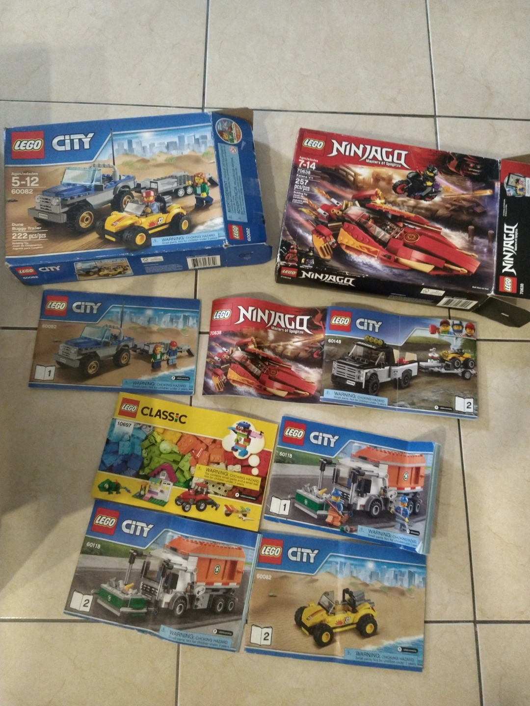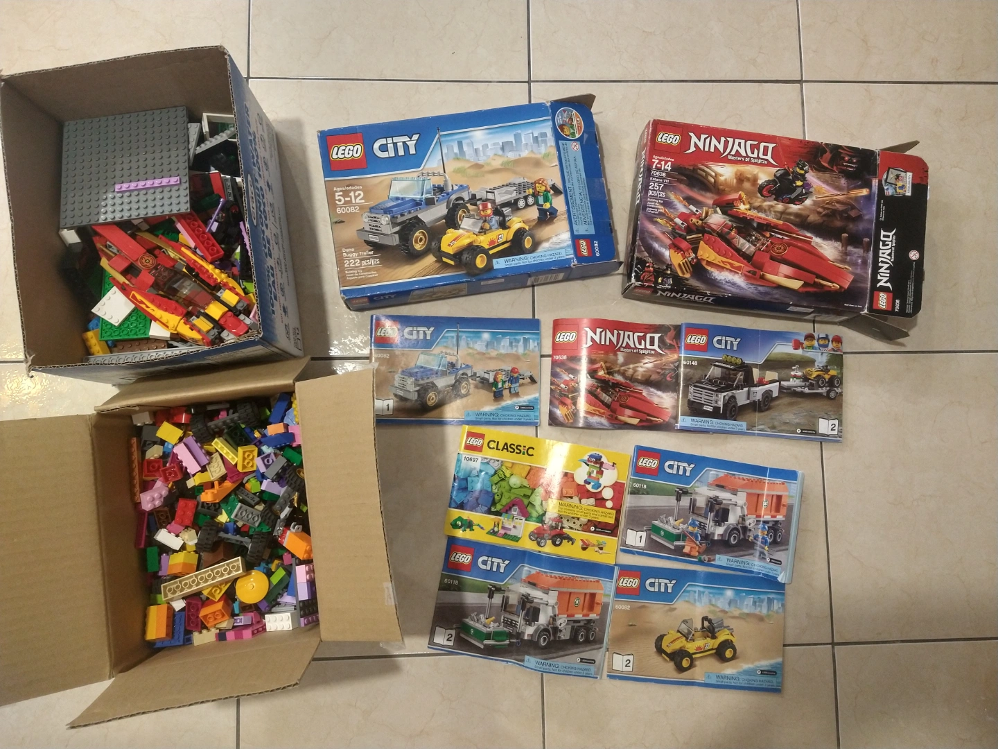 Almost 2500+ pieces. Includes multiple City and Ninjago sets, plus loose bricks in various colours and sizes. Boxes and instruction manuals included. Great for builders of all ages.