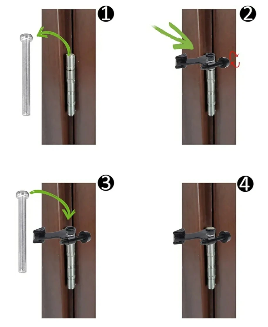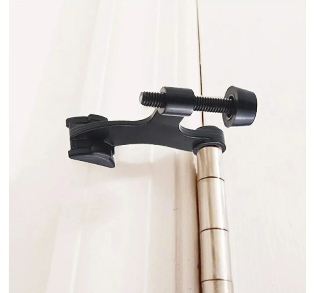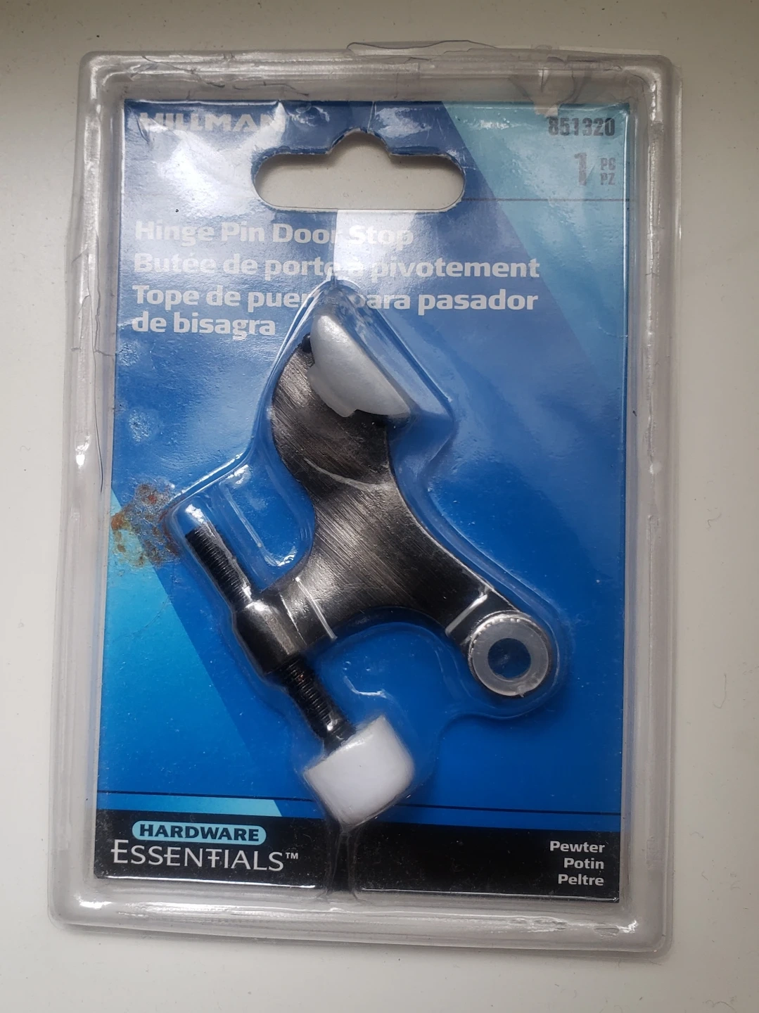 - Doorstop fits conveniently onto your existing hinge pin, and features a bumper on one end and a self-adjusting pad on the other that is designed to stop your door at any angle