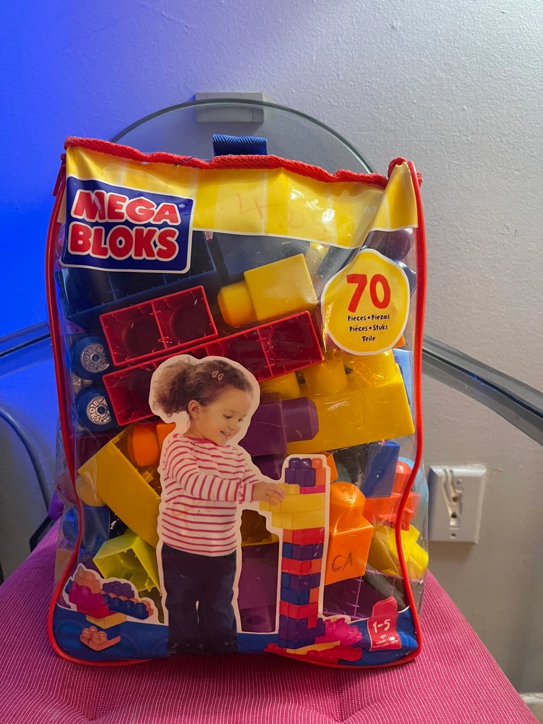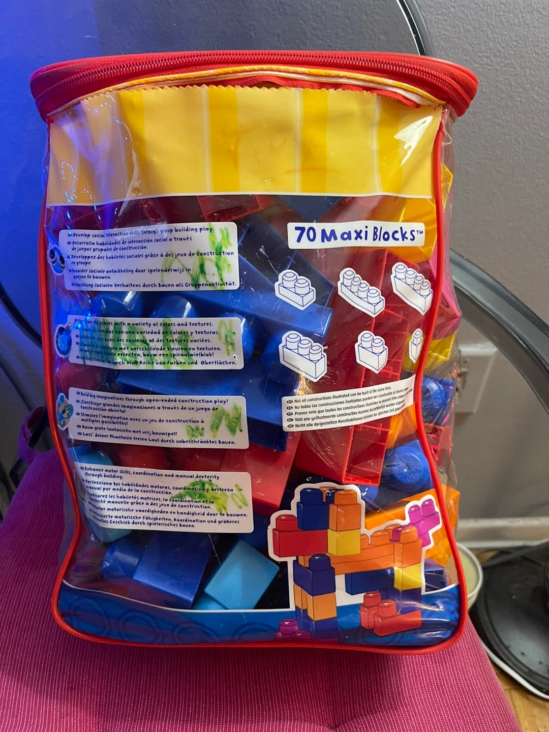 70 colourful plastic blocks. Great for toddlers. Includes carrying case. Suitable for ages 1-5.