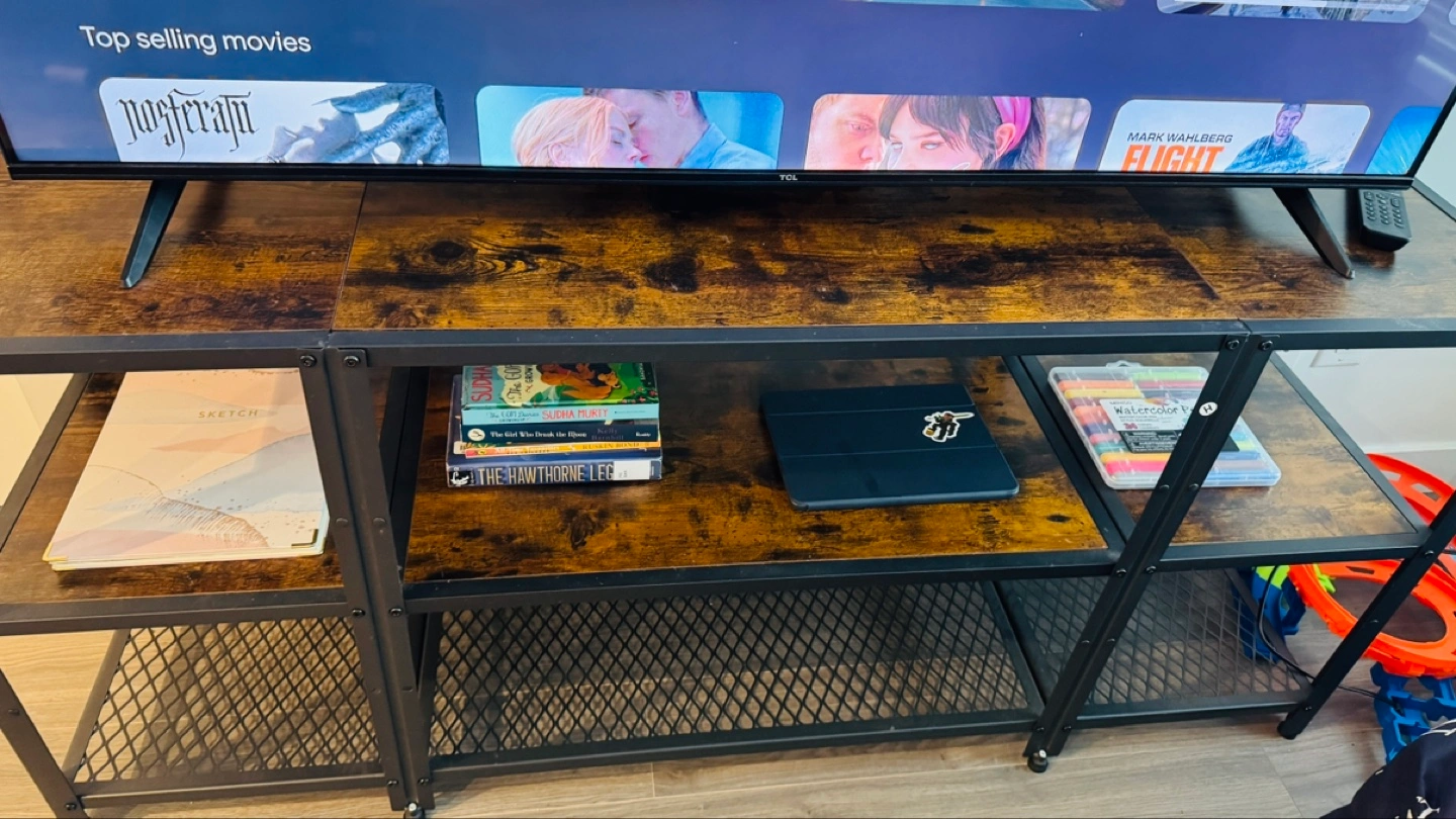 Rustic Industrial TV Stand with Shelves
