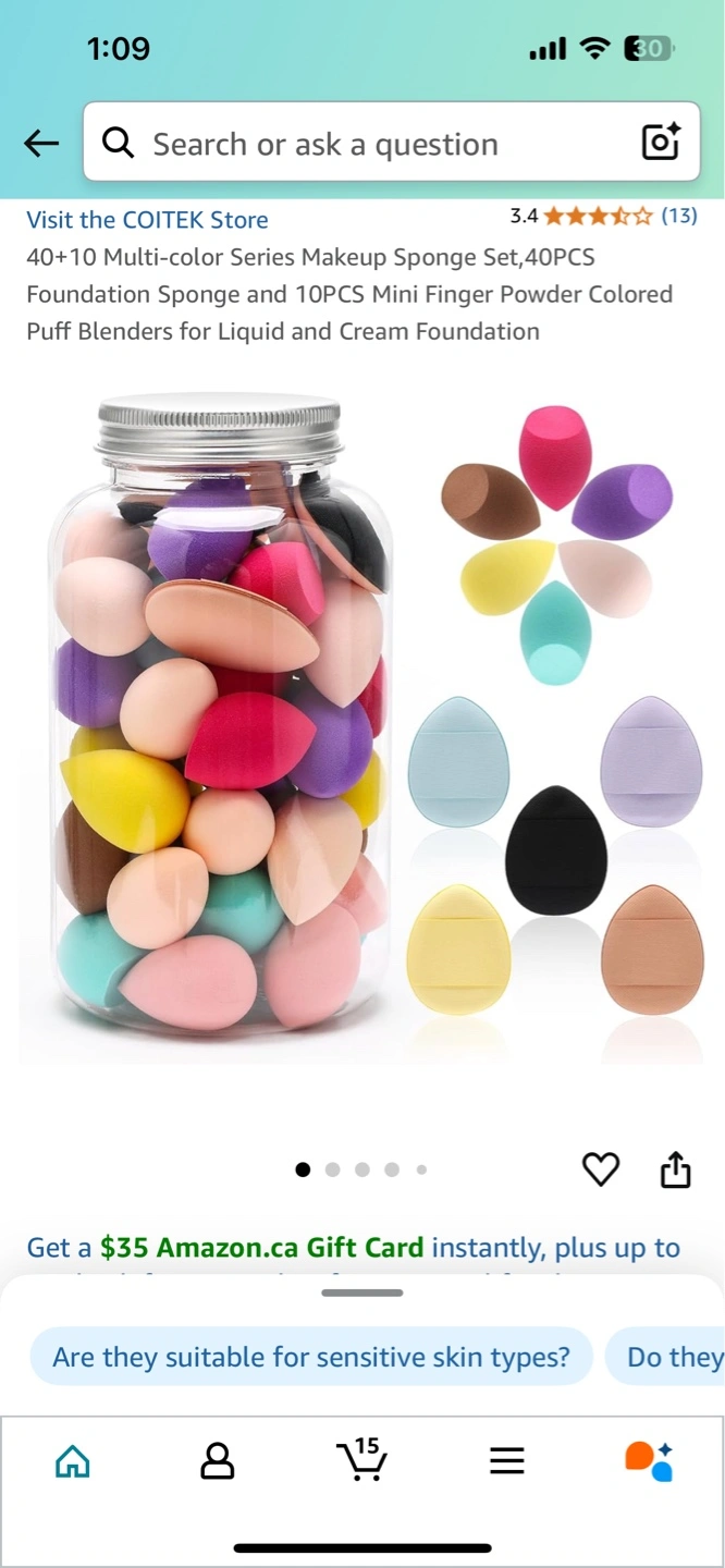 98New sealed Multi-coloured makeup sponge set. Includes 40 large and 10 small powder puffs. Great for liquid and cream foundation. Soft and elastic. Latex-free material.