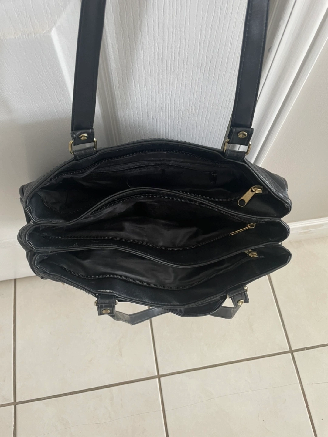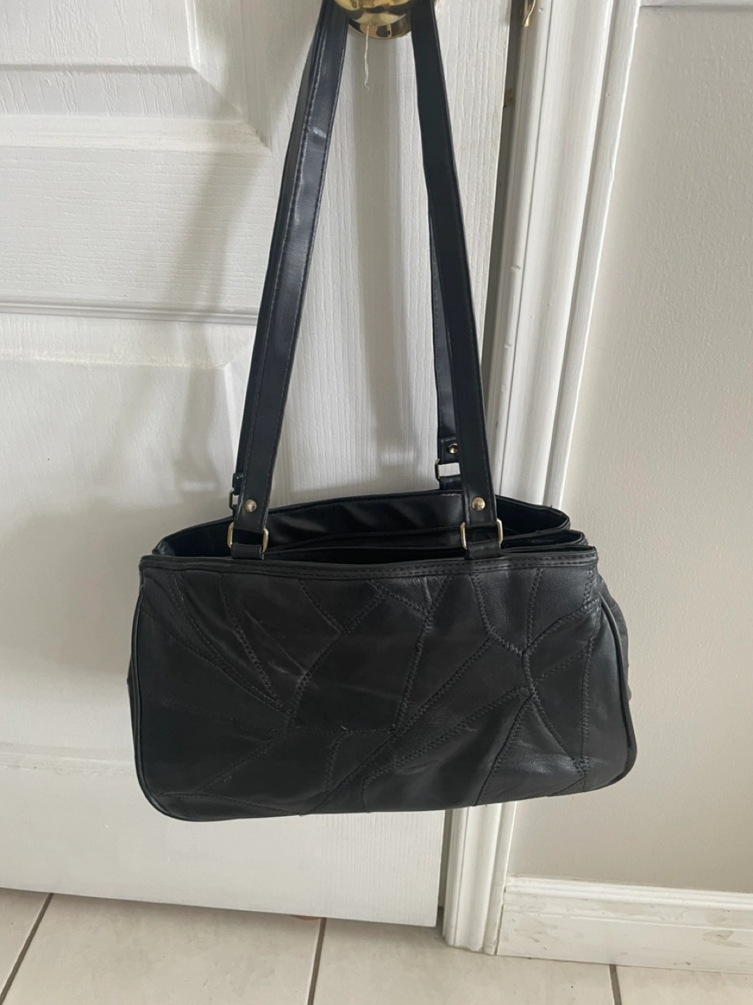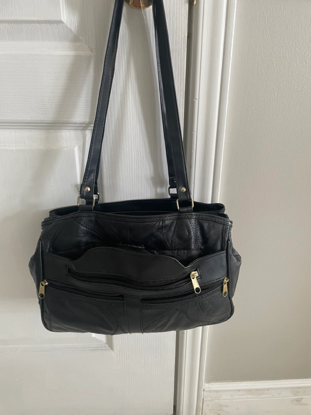This is a medium size used black leather purse with gold hardware, 2 shoulder straps and a patchwork design. It's a stylish and functional accessory with multiple compartments. It's in great condition, ready to carry your essentials with a touch of class. It is perfect for everyday use. I've always believed that a purse is not just a bag; it's a statement. And this one whispers elegance with a hint of adventure. But remember, just like finding a four-leaf clover, if you're seeing this ad, it means this stylish gem is still waiting for its new owner. So, don't let it slip away! Sfpfh. Ajax. Rossland and Salem area