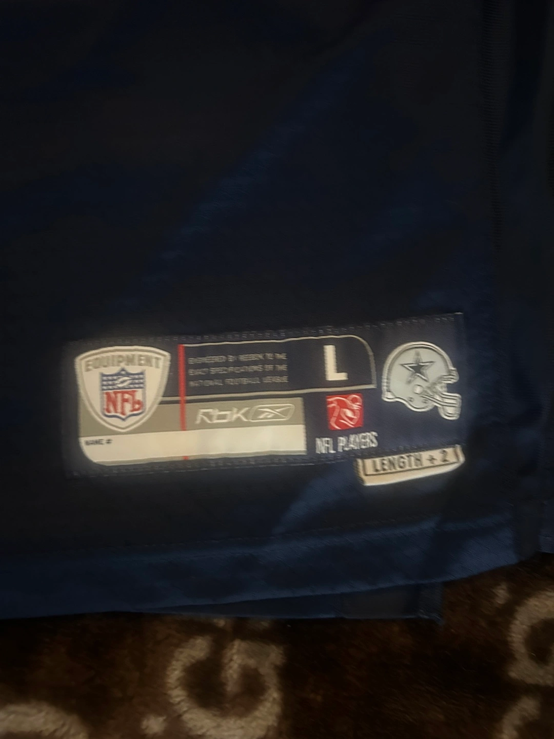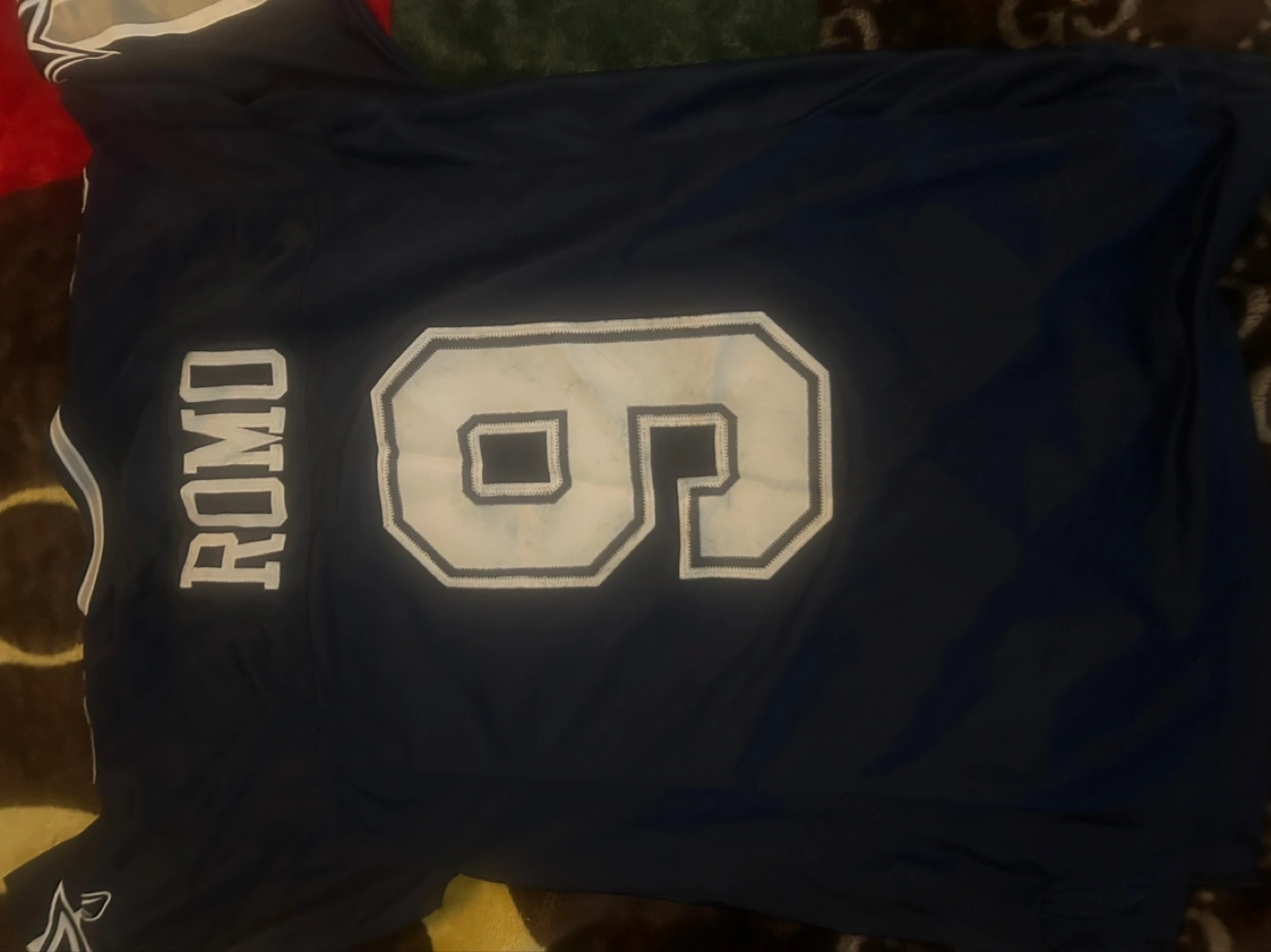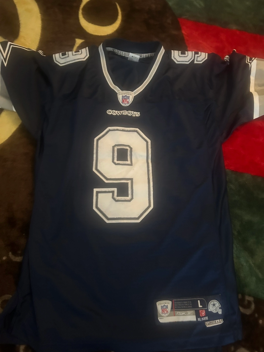 Get ready to showcase your Cowboys pride with this Tony Romo #9 Reebok NFL Equipment jersey in a size large! This item is used, but it is in good condition. Any true fan would love to have this jersey. 7.5/10 condition, the lettering isn’t 10/10 condition a bit wrinkled on the stitching. Key Features: - Brand: Reebok NFL Equipment - Player: Tony Romo - Number: 9 - Team: Dallas Cowboys - Size: L Estimated Value: With a bit of searching on Kijiji, similar jerseys typically go for around $60-$80. Given its condition, I'm pricing it at a fair $70.00. Why am I selling this beauty? Well, sometimes you have to make room in the closet! Rest assured, if you're reading this, the jersey is still up for grabs!