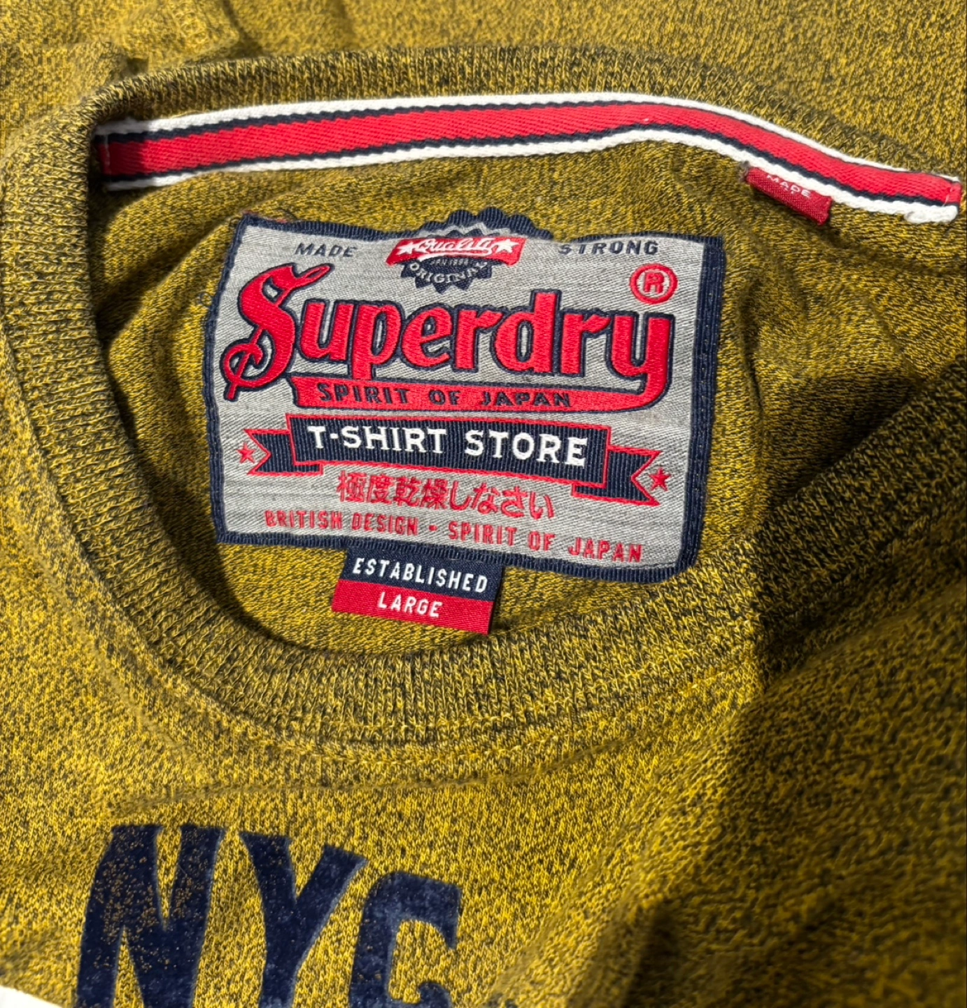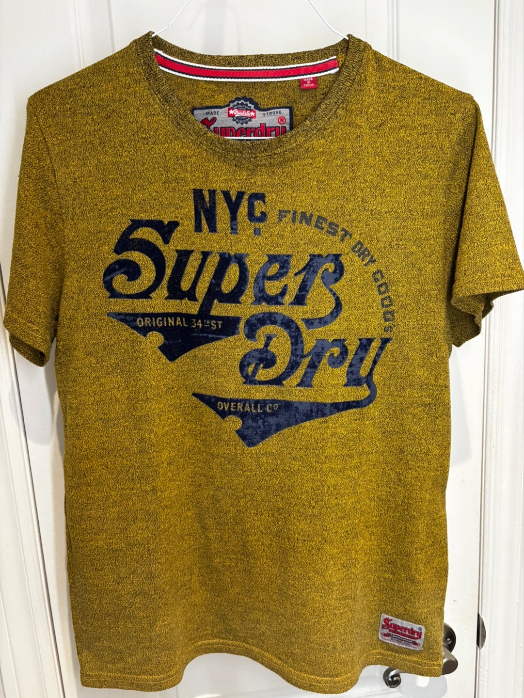 138Men Superdry 34th ST TEE Size Large in very good condition Pickup in Richmond Hill I sell vintage/used pieces. As a buyer of vintage or used objects you should assume a baseline of mild wear. If you expect normal minor wear you will be happy with your purchase.
