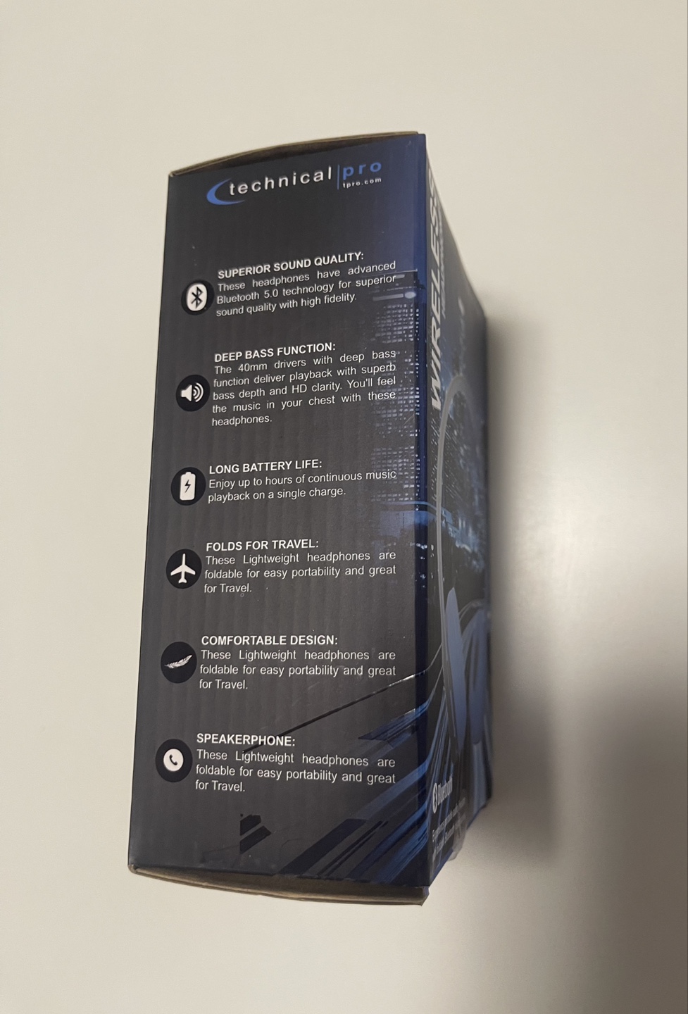 Foldable Bluetooth headphones. Superior sound quality. Deep bass function. Long battery life. Perfect on the go. Lightweight and comfortable.