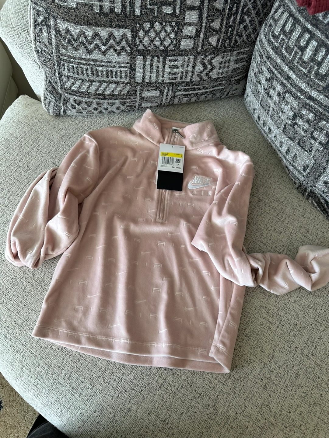 Buy & SellNike Girls' Pink Velour Zip-Up Top, Size XSNike Girls' Pink Velour Zip-Up Top, Size XS$123Adorable Nike velour zip-up top. Pink colour, all-over Nike logo print. Size extra small. New with tags. make me an offerConditionNewBrandNikeWHERE TO MEETCheck LocationView MapSELLERverifiedSeleneSouthwest Calgary1085 reviews0 chats·0 favorites·12 viewsSEND CHAT TO SELLERHi Selene! I’m interested in your listing.Hi Selene! I’m interested in your listing.Get the Karrot app to chatSign In to chat