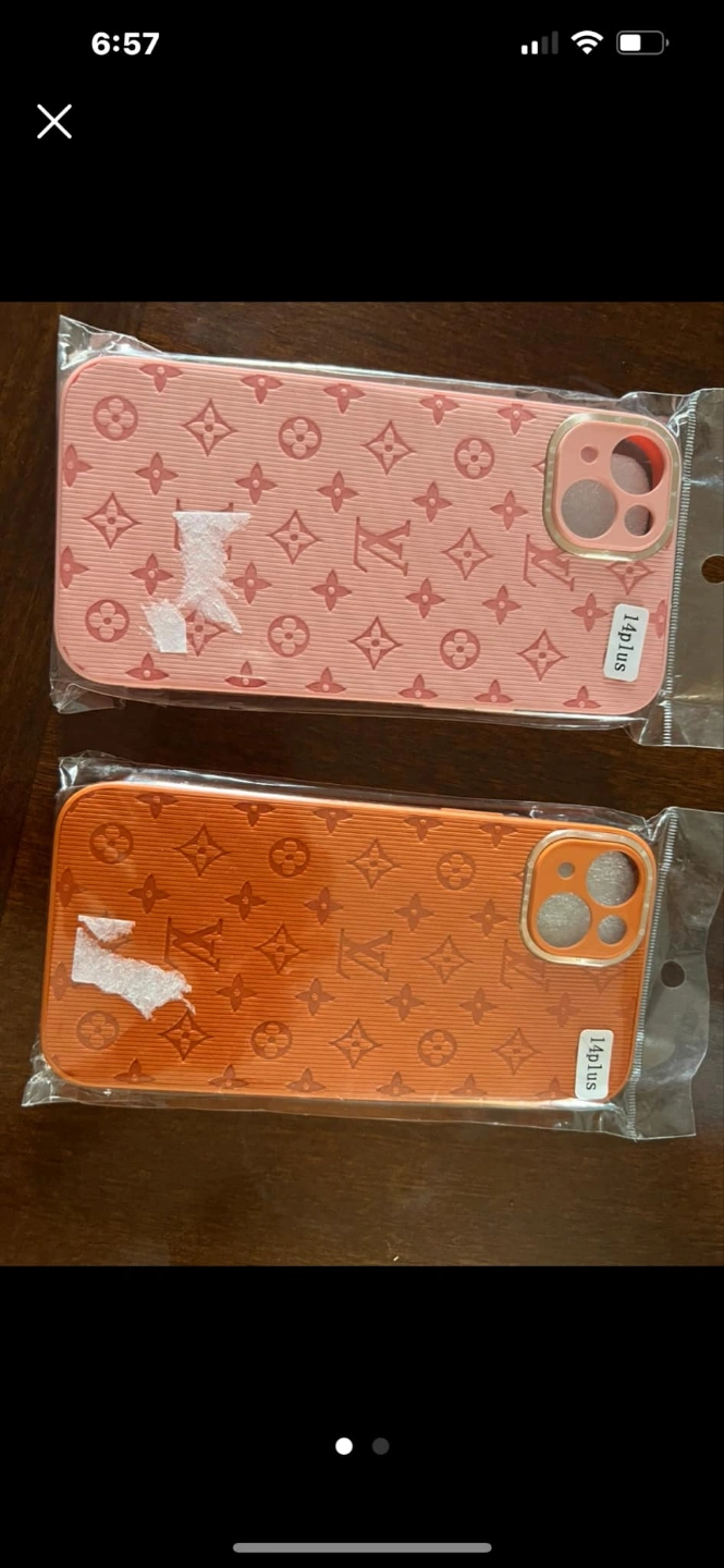 243Two new phone cases. Pretty pink and burnt orange colours. Louis Vuitton-inspired design. Sealed in plastic packaging. pick up 10 each or 15 both