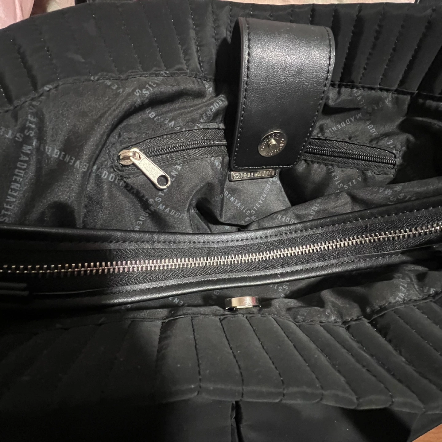 Steve Madden Black Quilted Tote Bag