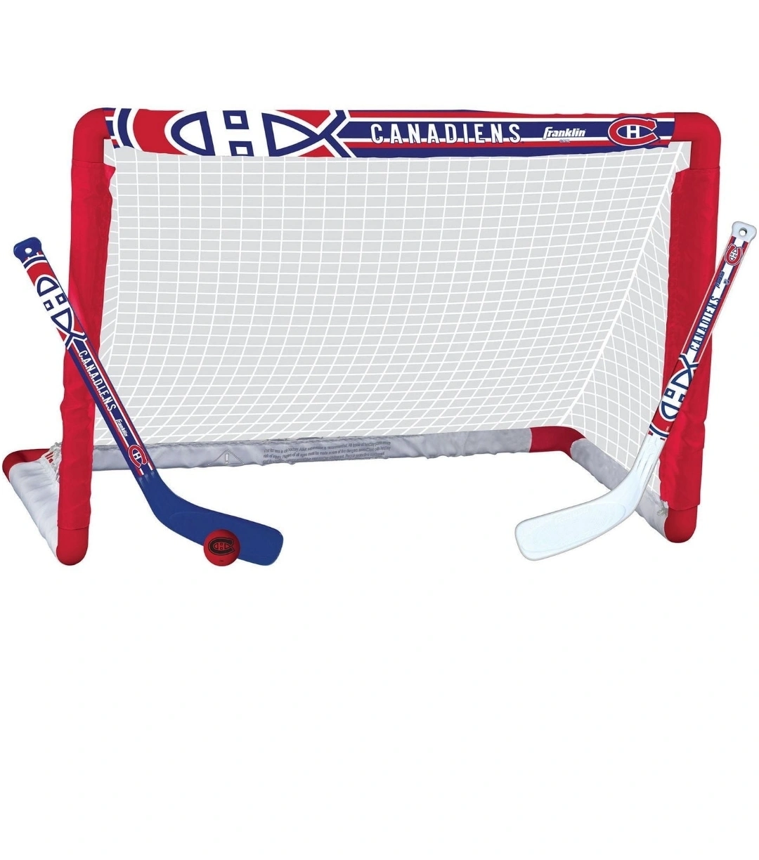 1000+Miniature hockey net and two sticks. Montreal Canadiens branding. Great for kids. ●Get your little hockey fan started early with this Franklin Montreal Canadiens hockey net set! This set is in brand new Sealed condition and includes a net, two mini hockey sticks, and a soft puck, perfect for indoor or outdoor play. * Officially licensed NHL product * Features Montreal Canadiens team logos and colours * Durable construction for long-lasting use * Easy to assemble If the ad's up, it's up for grabs! Don't miss out!