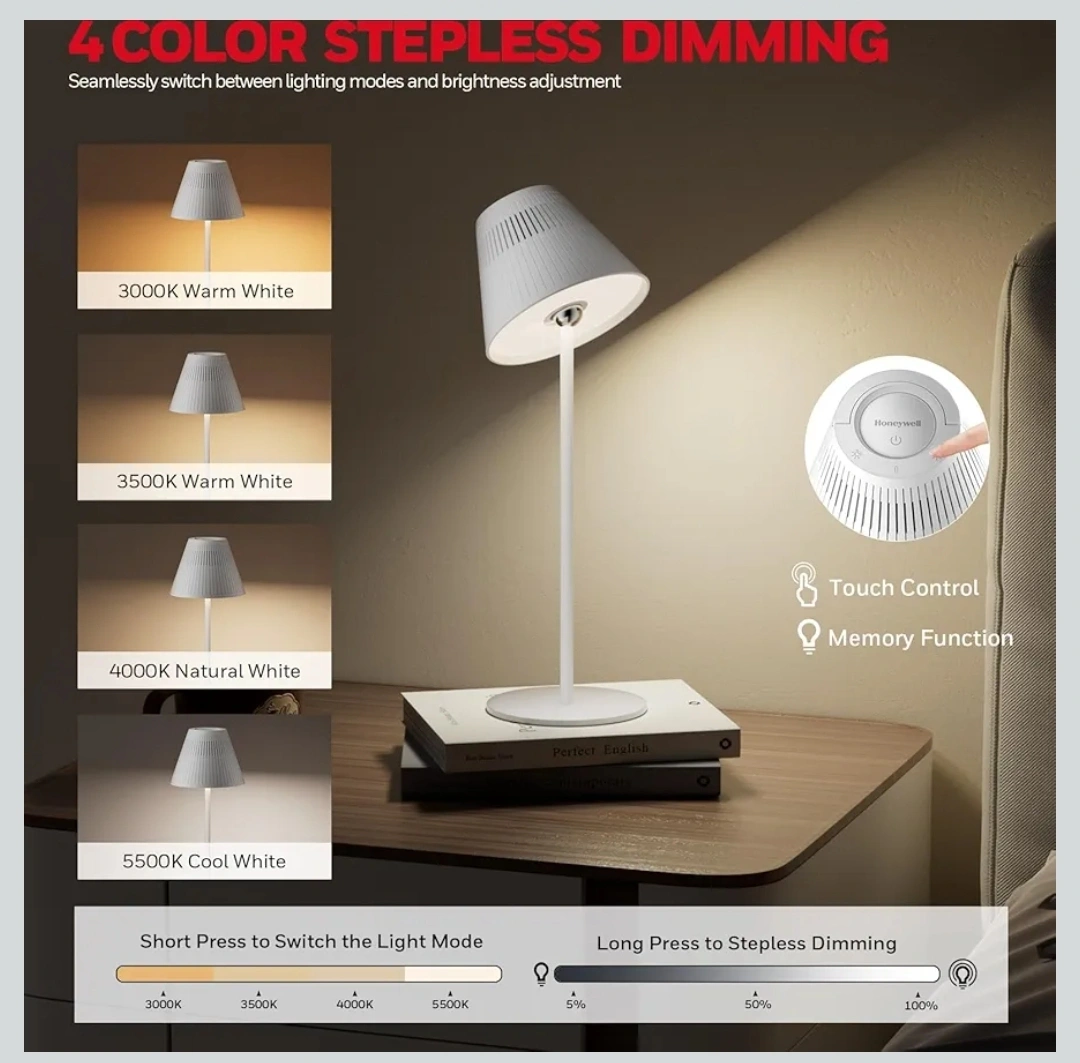 Honeywell cordless table lamp with RGB and colour temperature ad