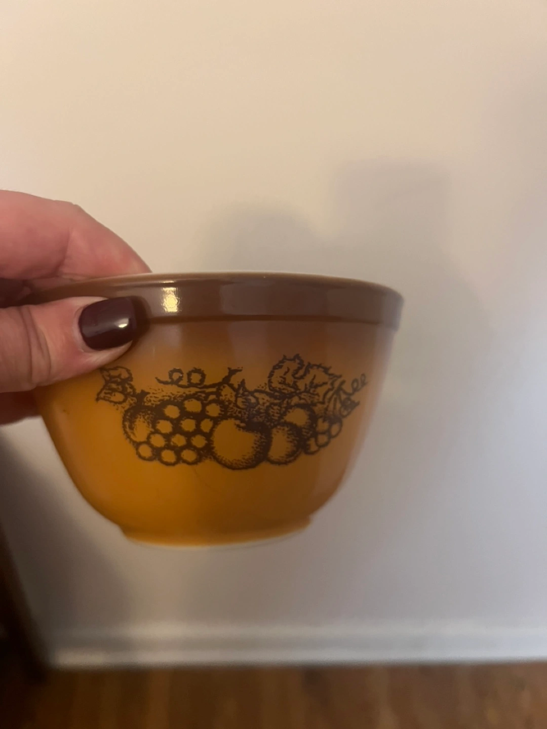 Buy & SellVintage Pyrex Mixing Bowl - Harvest Fruit DesignVintage Pyrex Mixing Bowl - Harvest Fruit Design$15Small vintage Pyrex mixing bowl. Features a Harvest Fruit design. Brown and orange colours. Two handles.WHERE TO MEETDollaramaView MapSELLERverifiedDebWoodbine Beach750 reviews0 chats·0 favorites·13 views