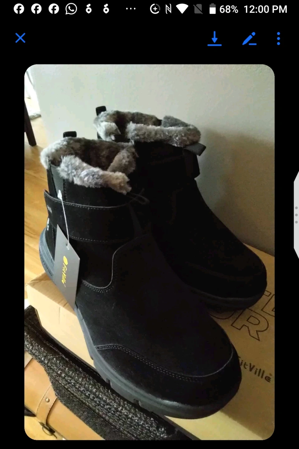 Warm winter boots, black suede-like material. Faux fur lining. Comfortable soles. water repellant