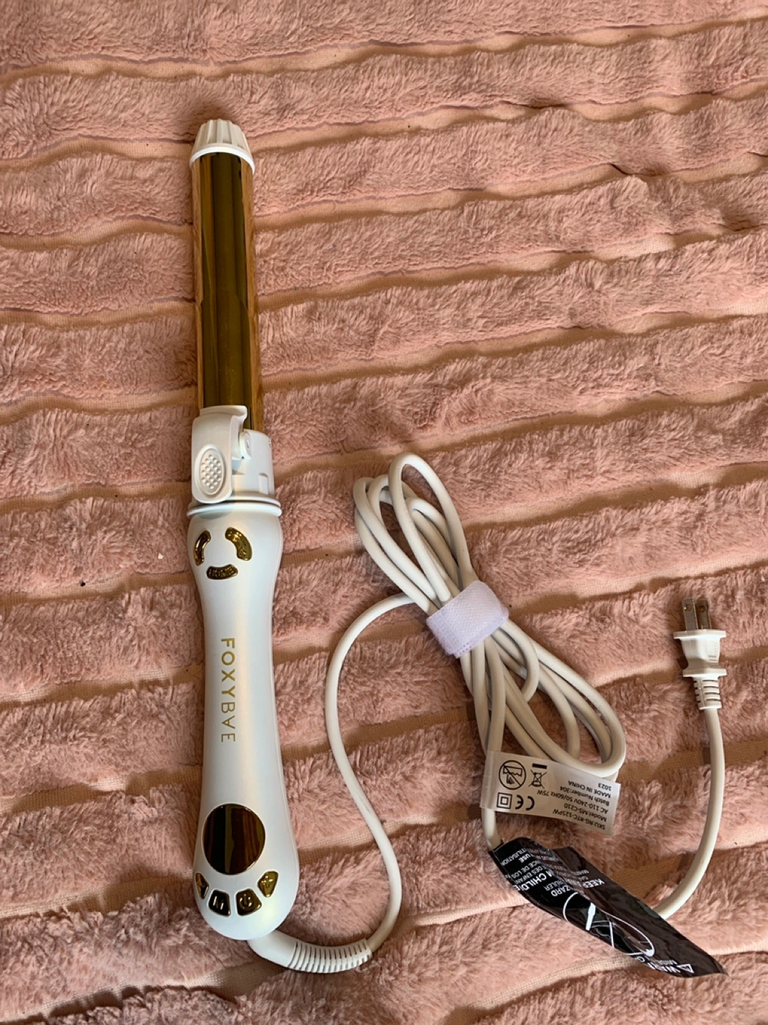 PRICE LISTED OR BEST OFFER White and gold curling wand. Digital temperature control. Includes power cord. Only used one, turns out I’m not good at curling my hair 🫣