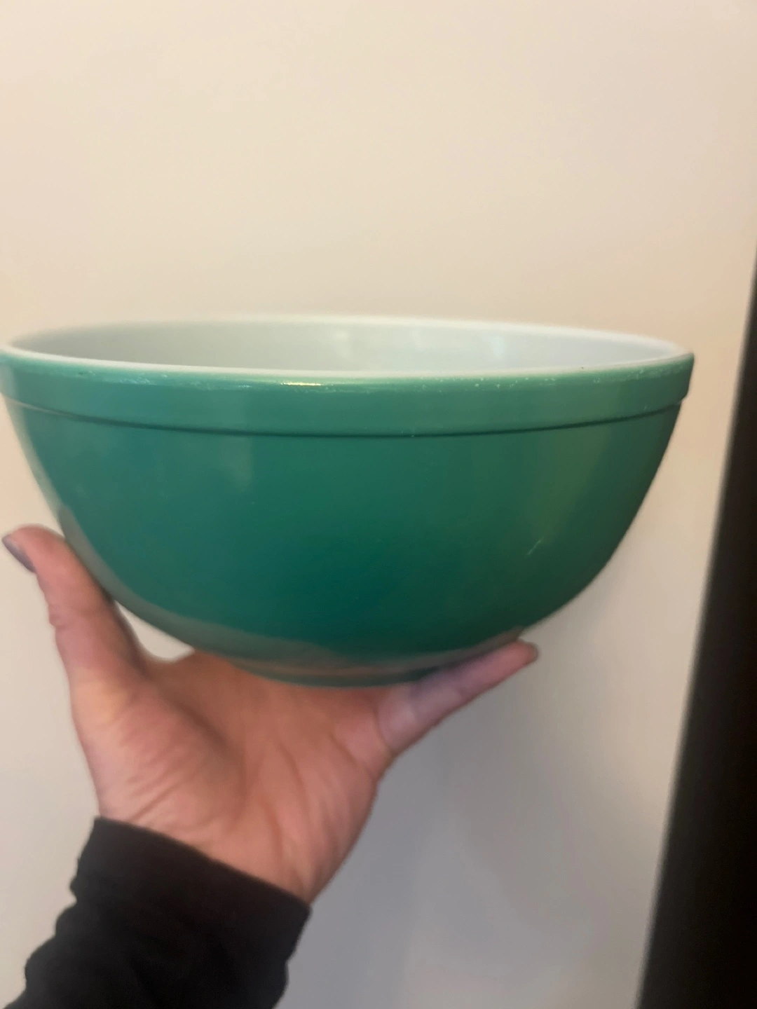 Buy & SellVintage Pyrex Mixing Bowl, dark GreenVintage Pyrex Mixing Bowl, dark Green$17Beautiful teal green Pyrex mixing bowl 2nd largest bowl to complete your set. Great for mixing, serving, or as decor. Shows minor signs of use.ConditionLike newWHERE TO MEETDollaramaView MapSELLERverifiedDebWoodbine Beach750 reviews0 chats·1 favorites·34 views