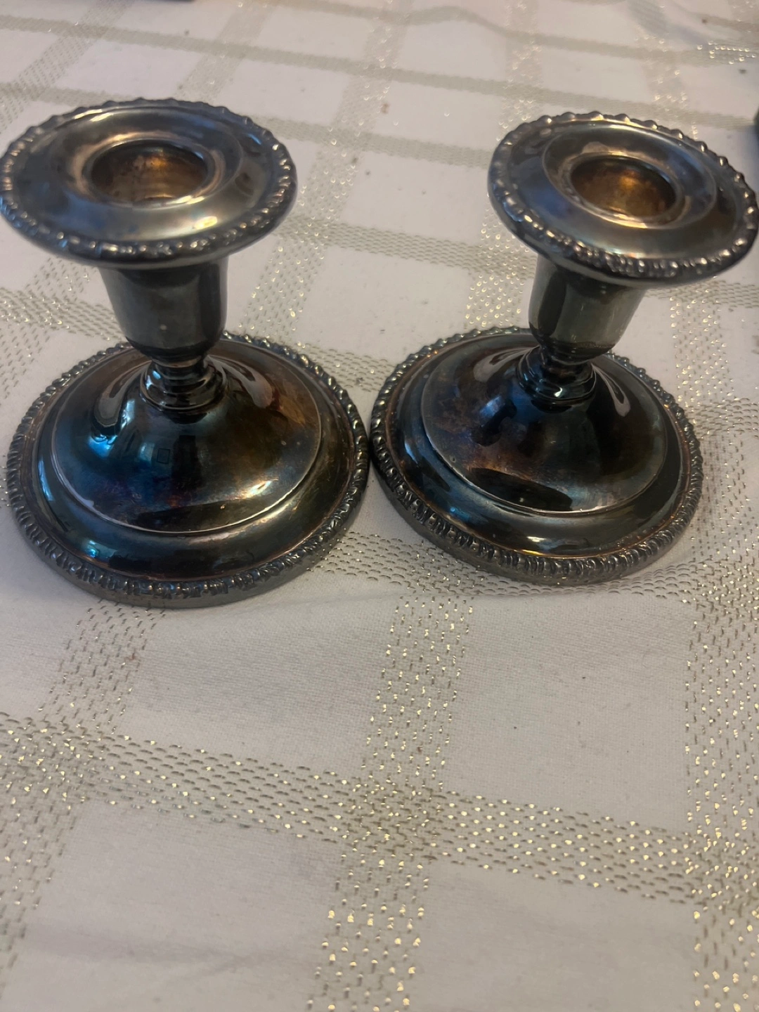 Buy & SellVintage Coronet Plate Silver Candle HoldersVintage Coronet Plate Silver Candle Holders$60Pair of vintage silver candle holders. Small, elegant design. Ideal for a table setting or home decor. Some signs of age and wear. No wax marks.ConditionLike newWHERE TO MEETDollaramaView MapSELLERverifiedDebWoodbine Beach750 reviews0 chats·0 favorites·23 views