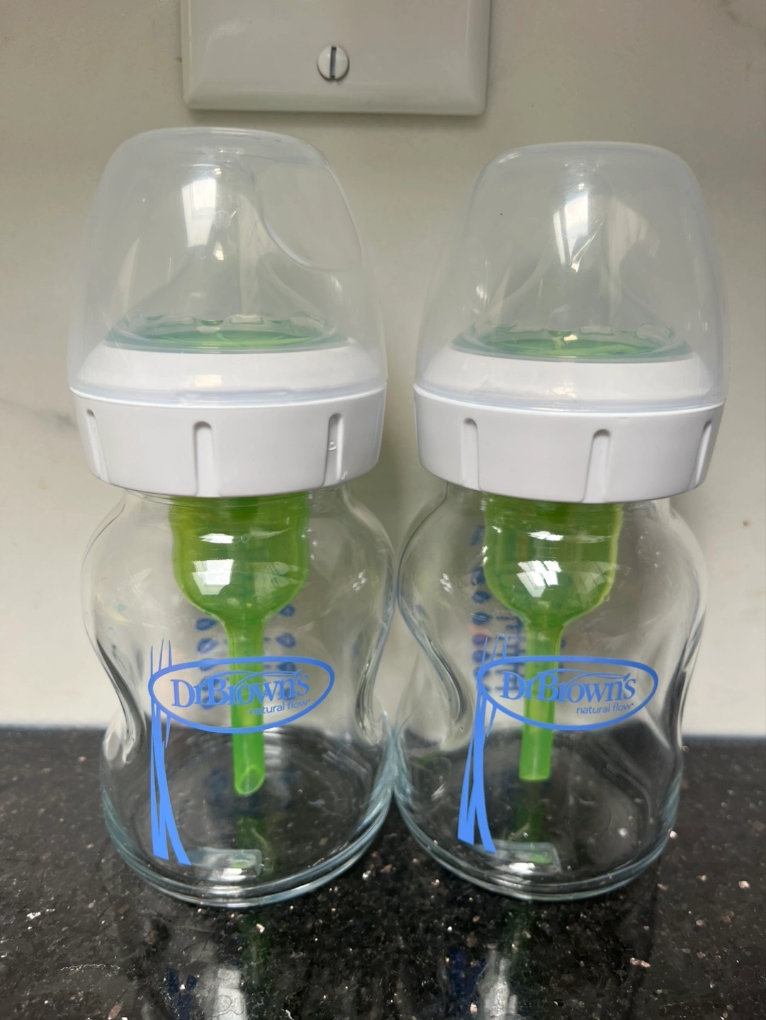 Dr. Brown’s Natural Flow Anti-Colic Options+ Wide-Neck Glass Baby Bottle 5oz/150mL, with Level 1 Slow Flow Nipple, 0m+, 2-Pack.
