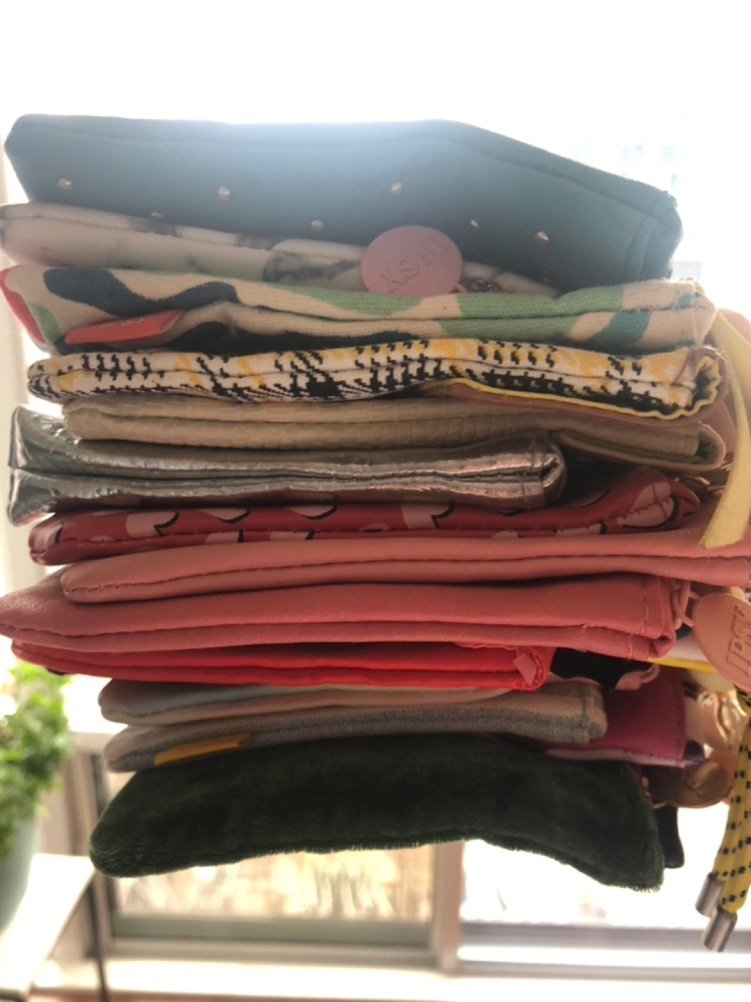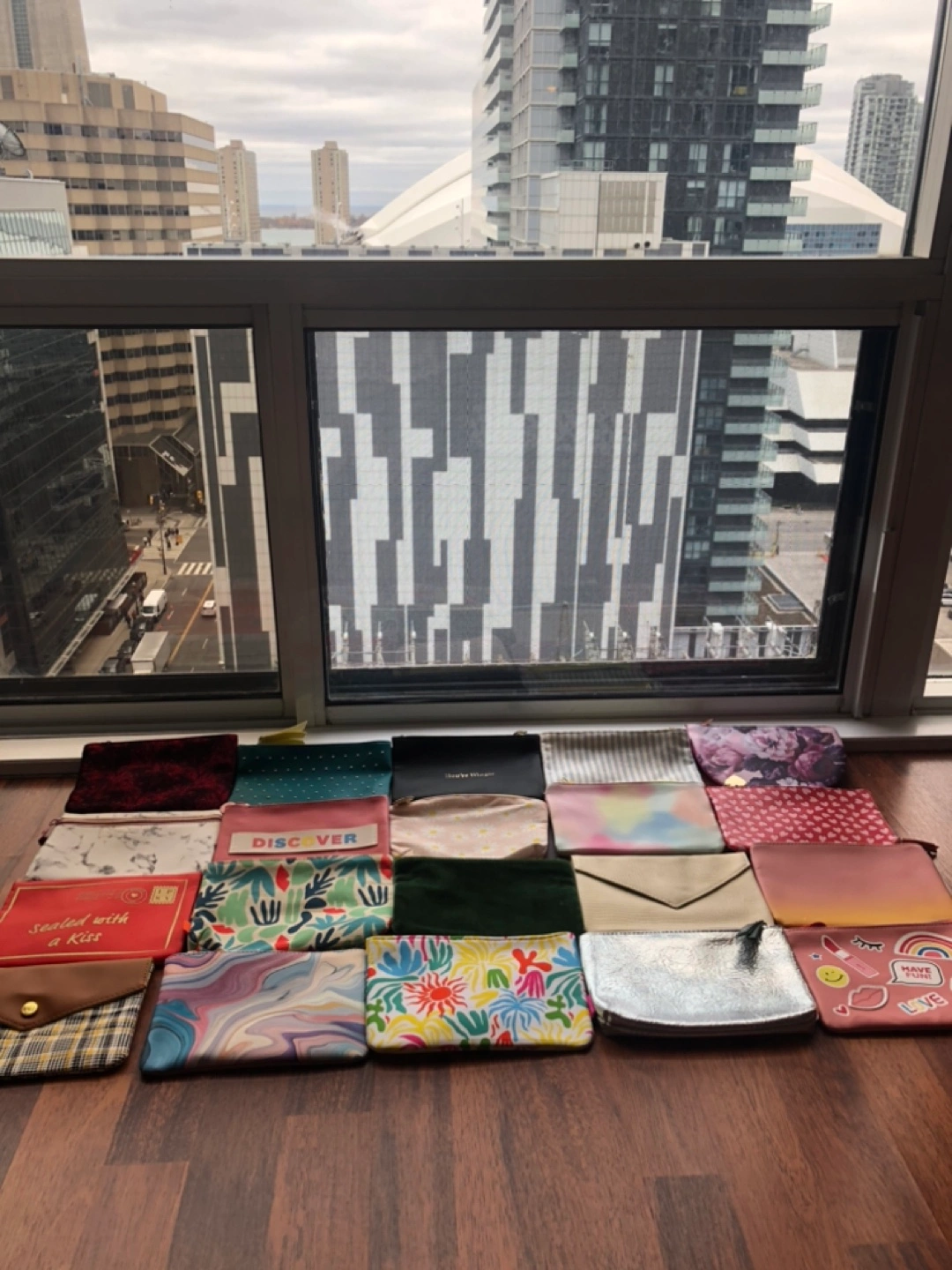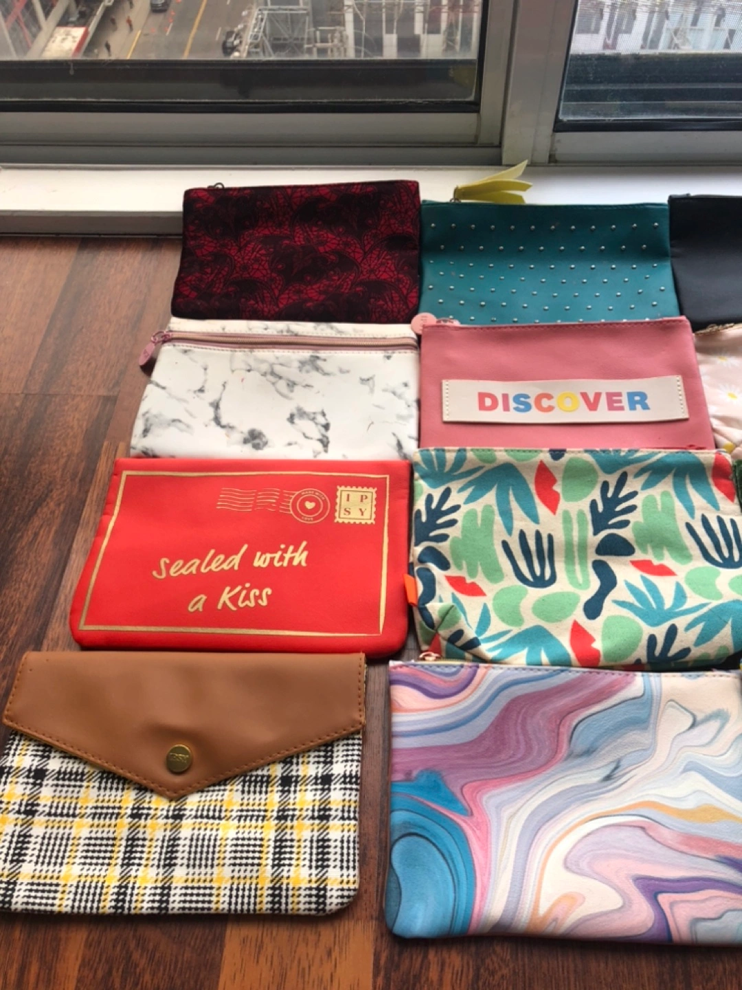 Variety of cute and colourful cosmetic bags. Perfect for travel or everyday use. Zipper closures. Different patterns and designs. 3$ each or 15$ for all