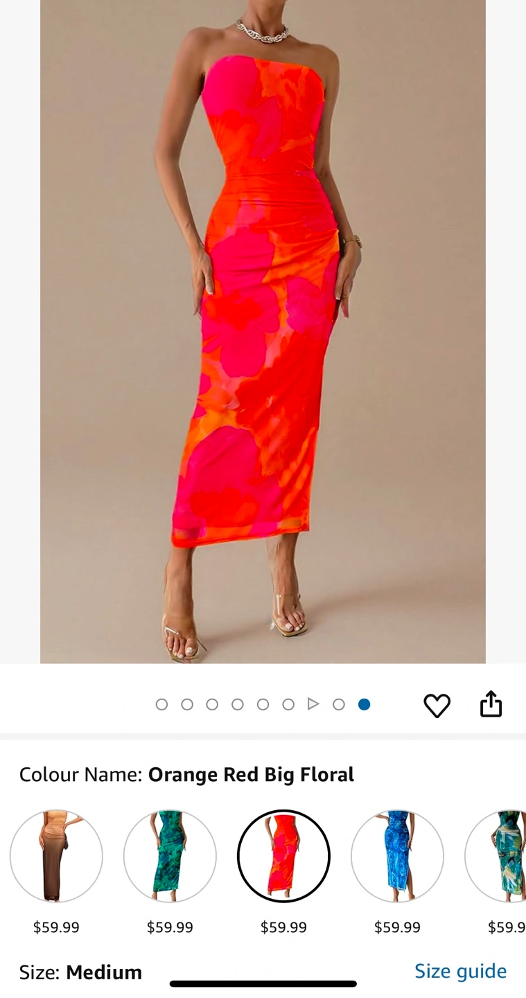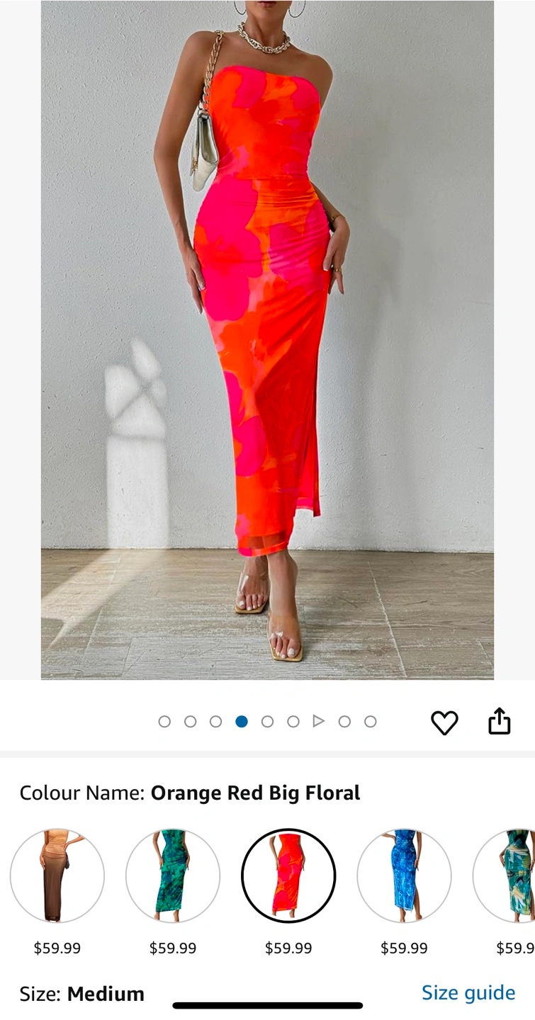 New PRETTYGARDEN Women's Summer Bodycon Dresses Strapless Tube Top Printed Long Party Club Slit Dress + strap
