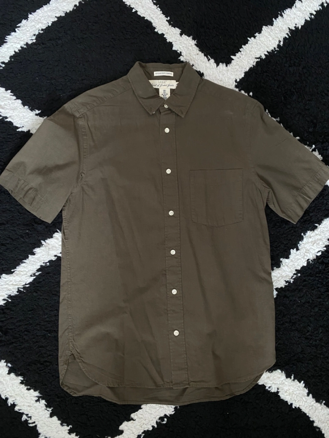 270Olive green short sleeve button-down shirt. Relaxed fit Small size (Fits Medium) Great for casual wear.
