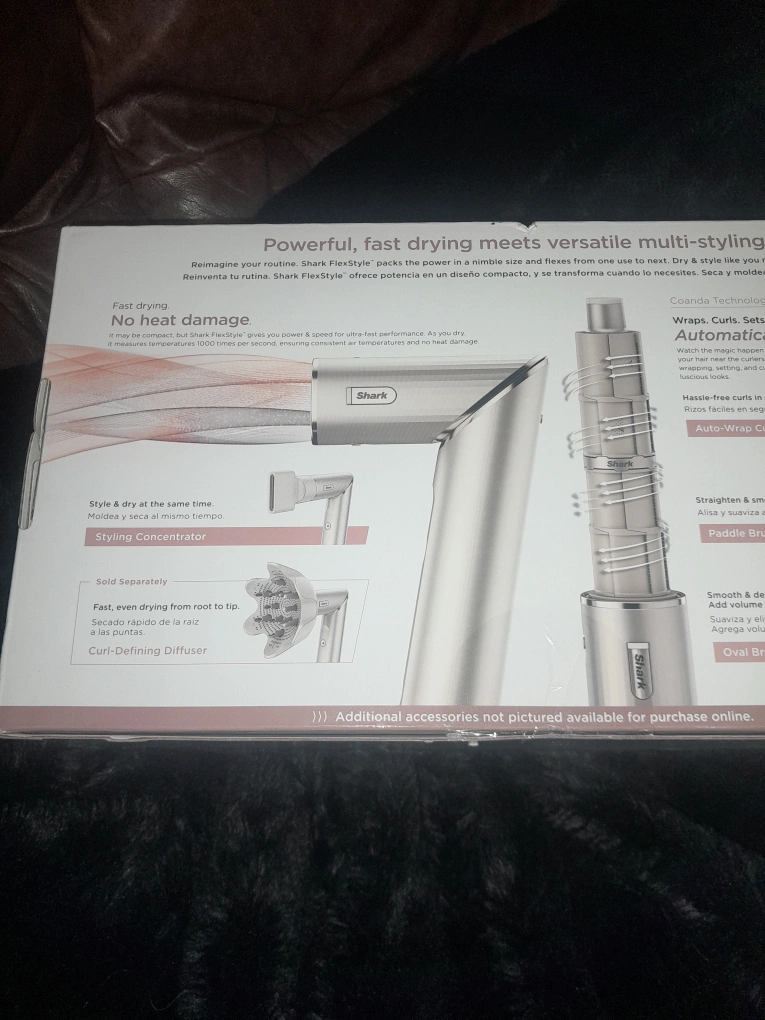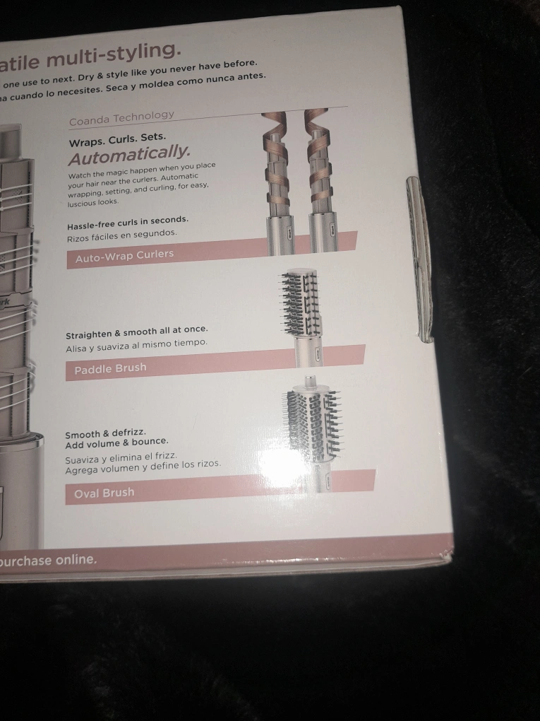 Powerful, fast-drying hair styling tool. Versatile multi-styling options. Includes multiple attachments: concentrator, paddle brush, oval brush, and auto-wrap curlers. Coanda technology. No heat damage. wraps, curls,sets, automatically brand new sealed box