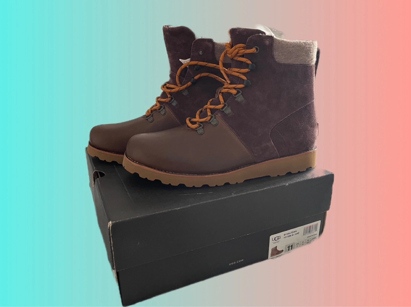Brand New Men's UGG Halfdan Brown Leather Lace Up Ankle Boots, suede upper. Brand New. Very warm high quality boots.