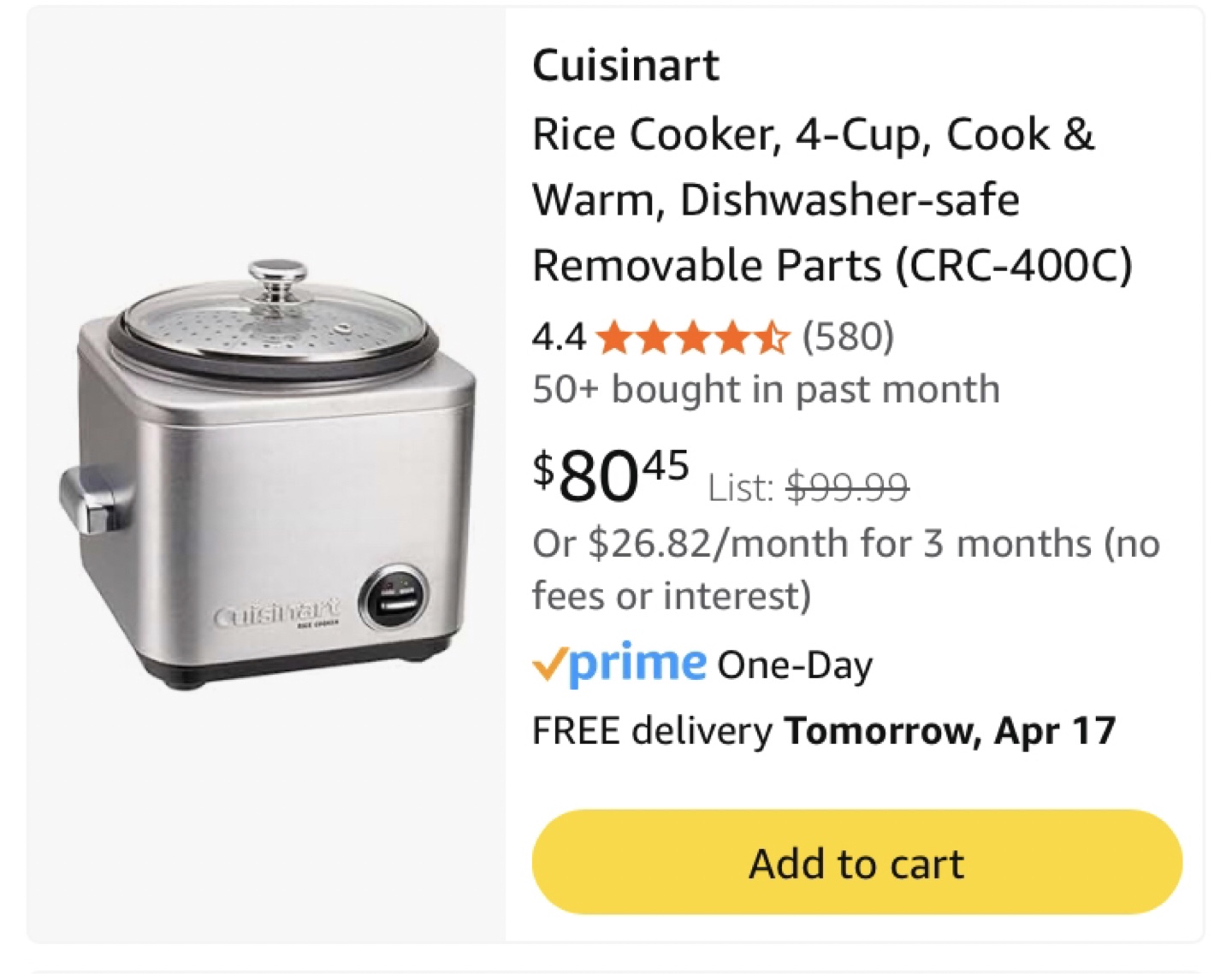 Cuisinart 4-Cup Rice Cooker & Steamer (CRC-400C)