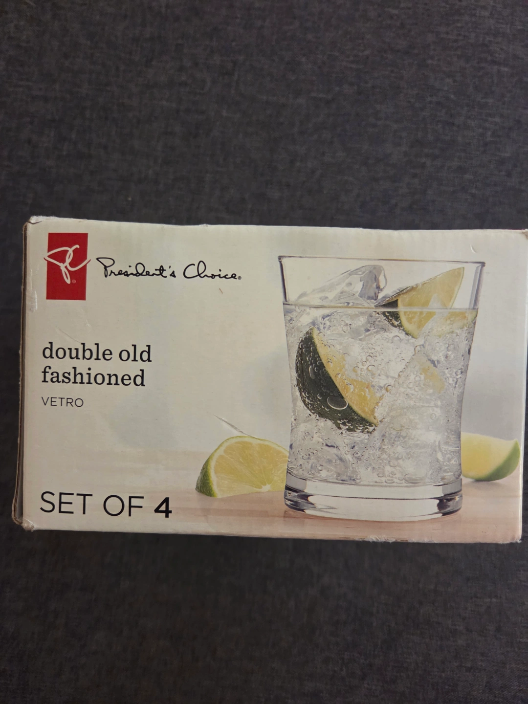 7Set of four President's Choice Vetro double old fashioned glasses. in box.