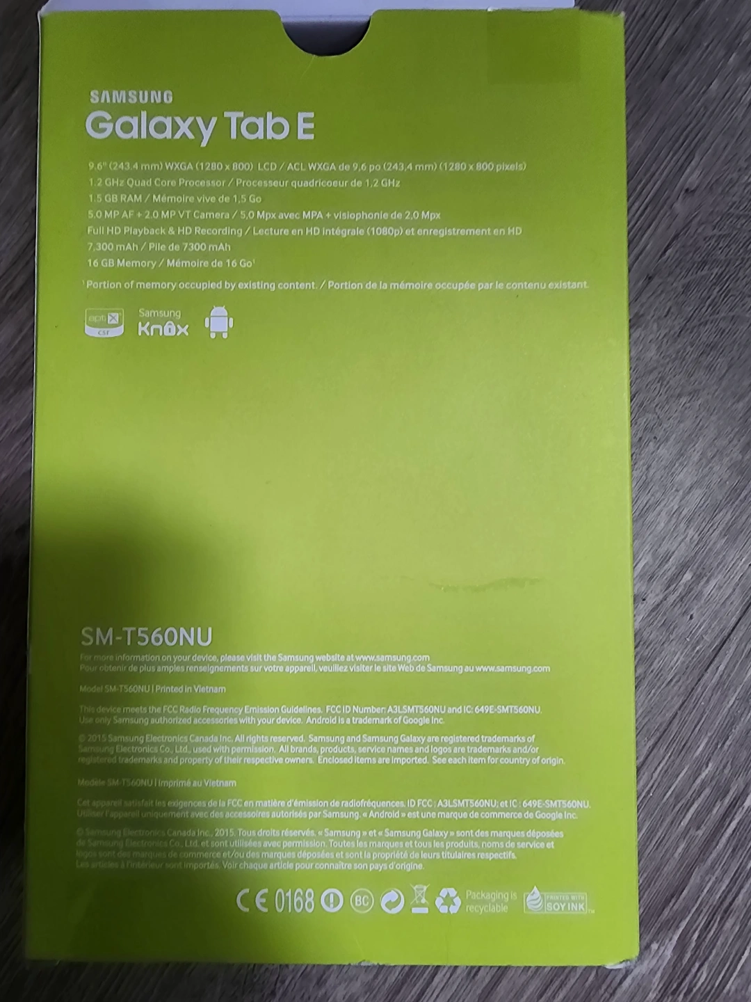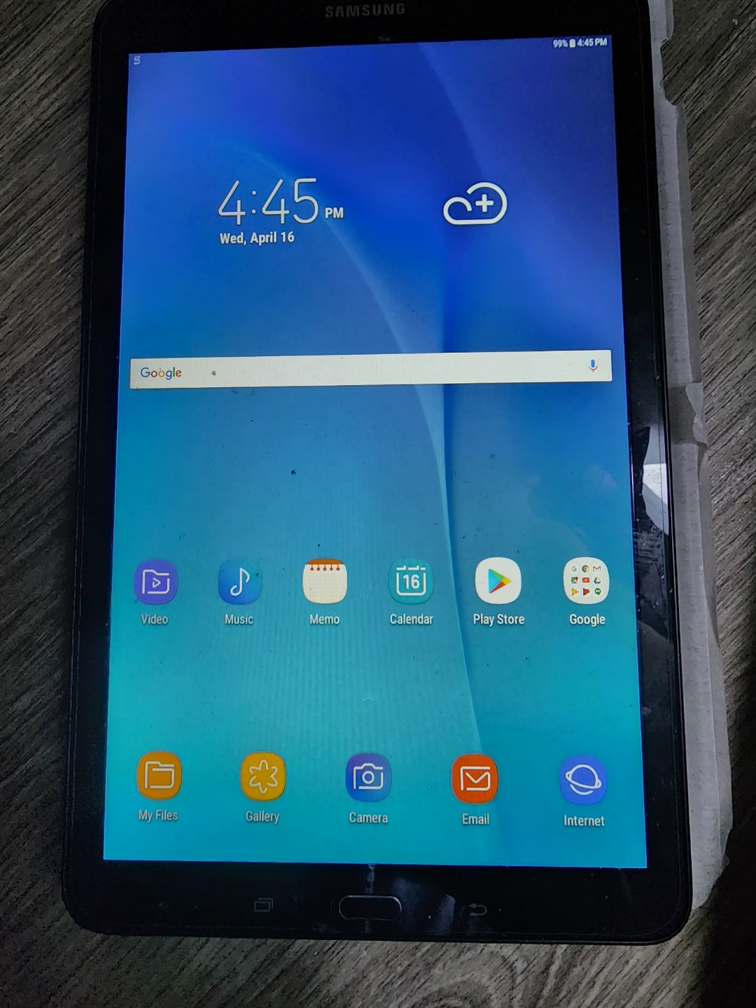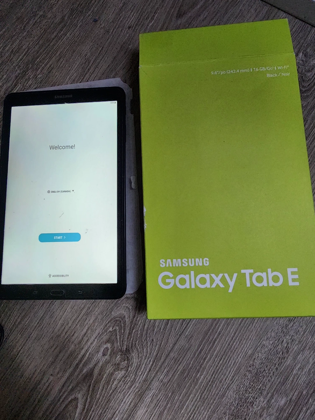 Used Samsung Galaxy Tab E tablet. 16GB memory. Black. Includes original box.