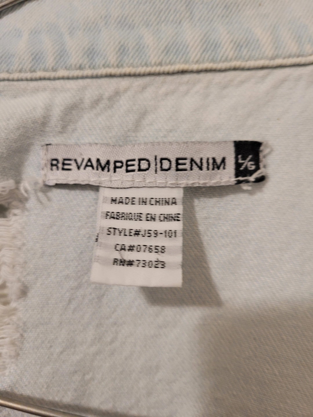 Revamped Denim Light Wash Distressed Cold Shoulder Jacket Size L
