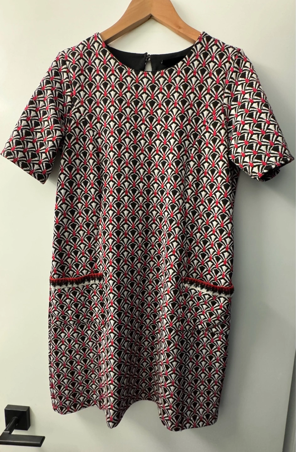 Lovely embroidered dress, nice material. Great condition, never really worn (too big on me). Has two front pockets, lined. Great for the office! Hits slightly above the knee. Size medium (4-8).